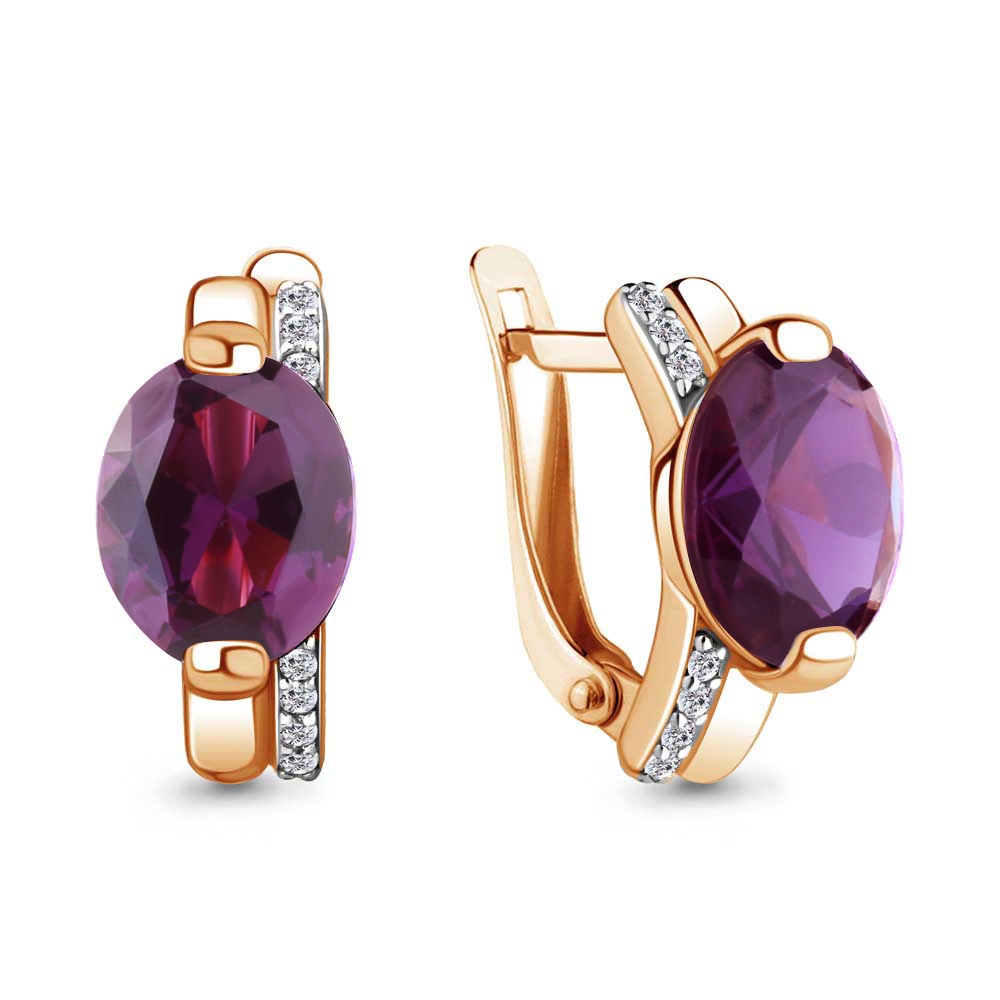 4749684А Серьги из Серебра с наноаметистами иск., фианитами