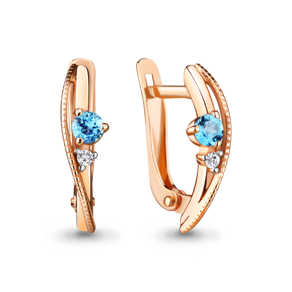 4755605 Серьги из Серебра с топазами свисс блю, фианитами