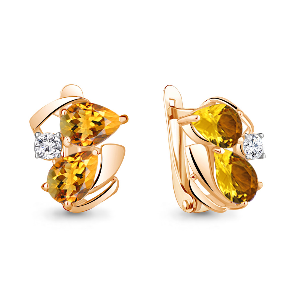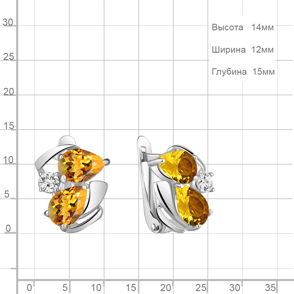 4755706А Серьги из Серебра с фианитами, цитринами