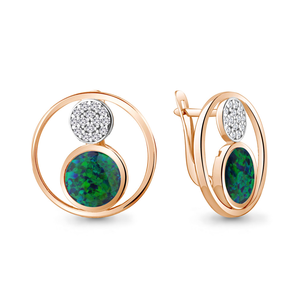 4756696А Серьги из Серебра с опалами иск., фианитами