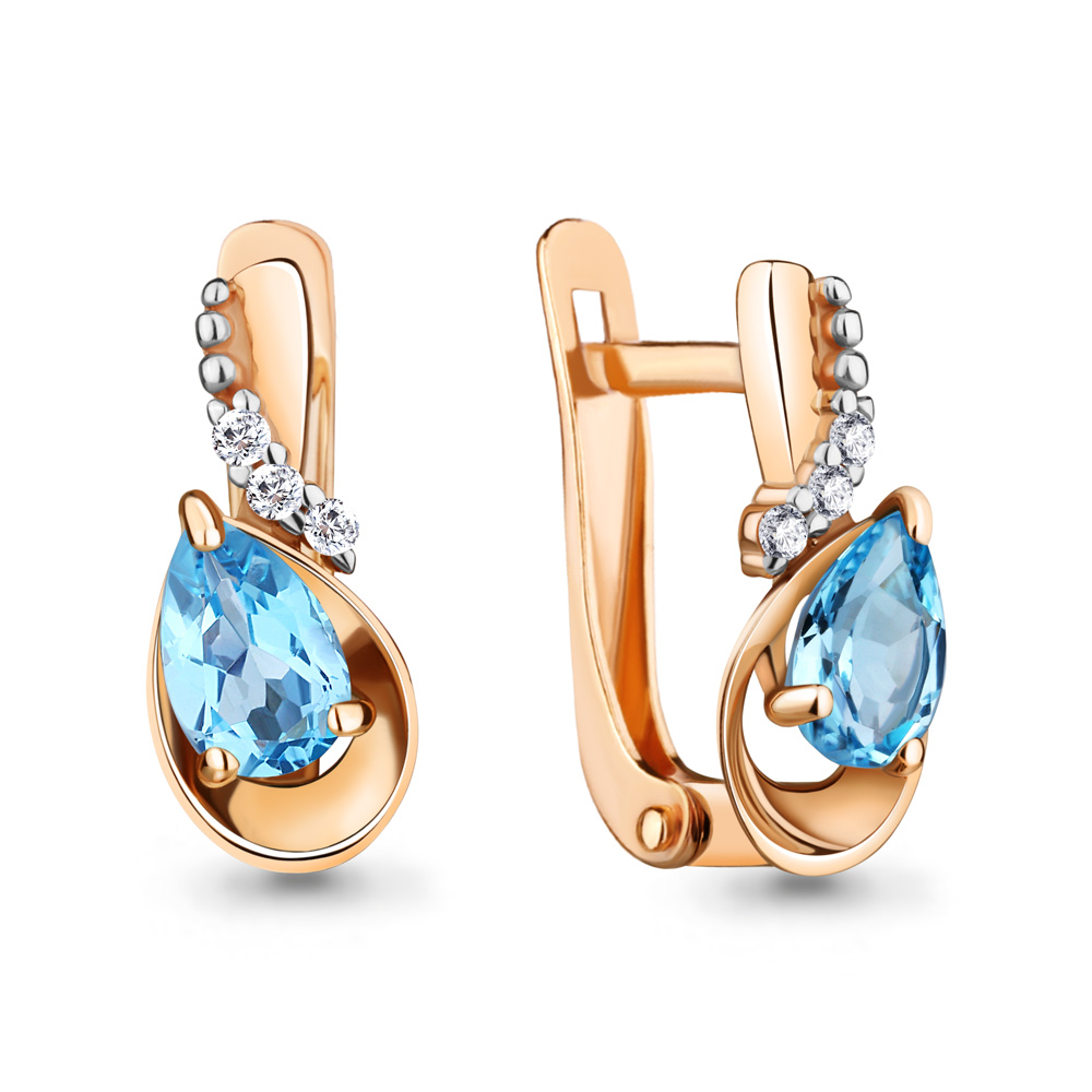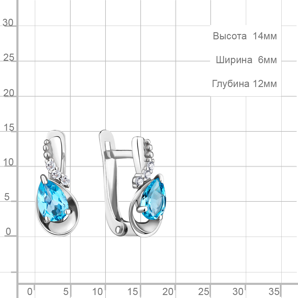 4757005А Серьги из Серебра с топазами свисс блю, фианитами