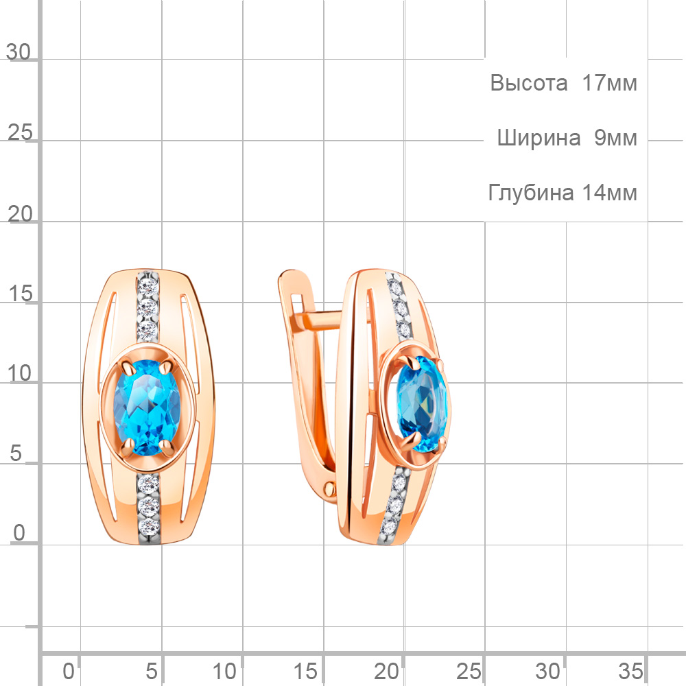 4759505А Серьги из Серебра с топазами свисс блю, фианитами