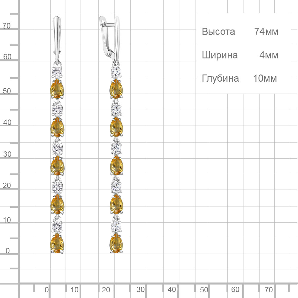 4760206А Серьги из Серебра с фианитами, цитринами