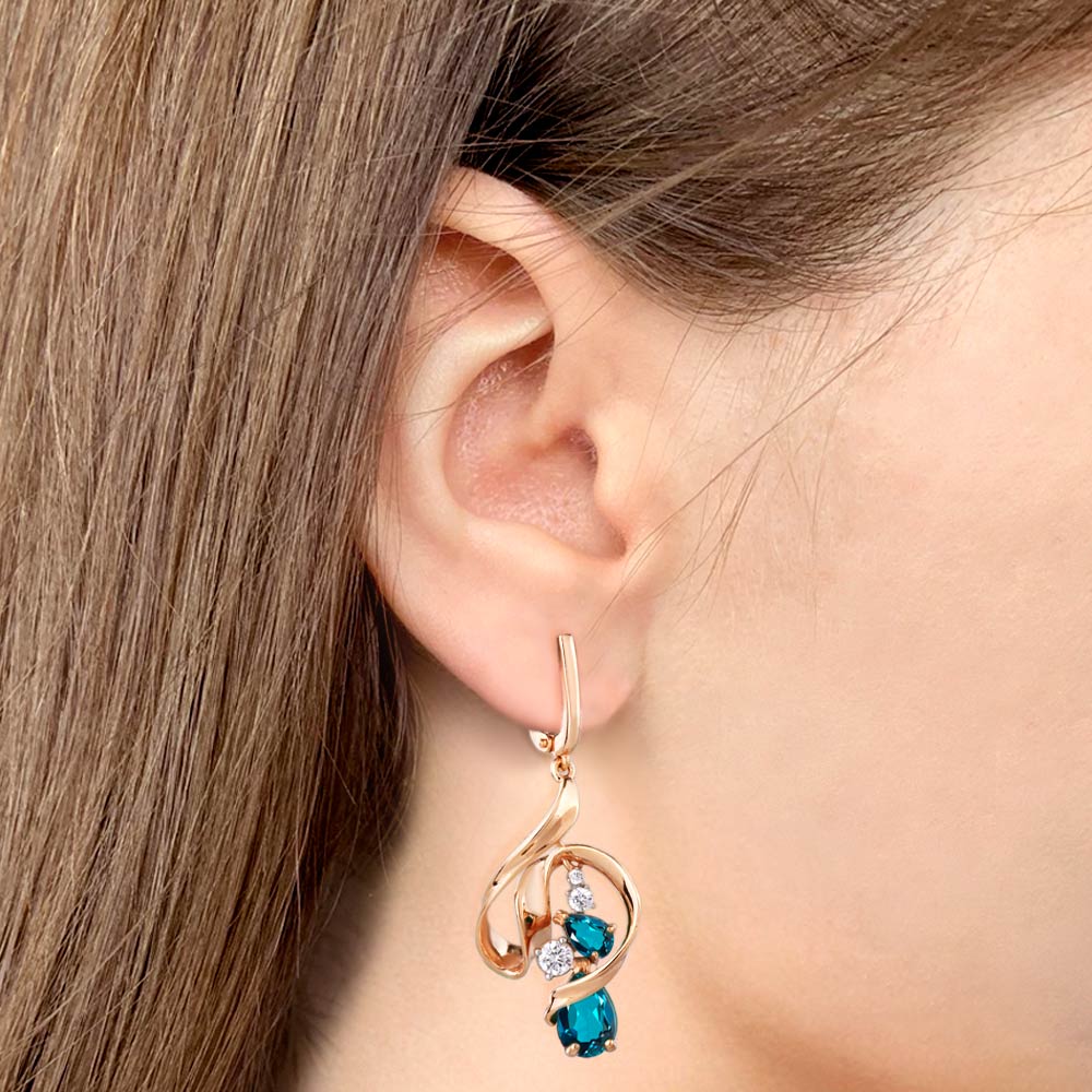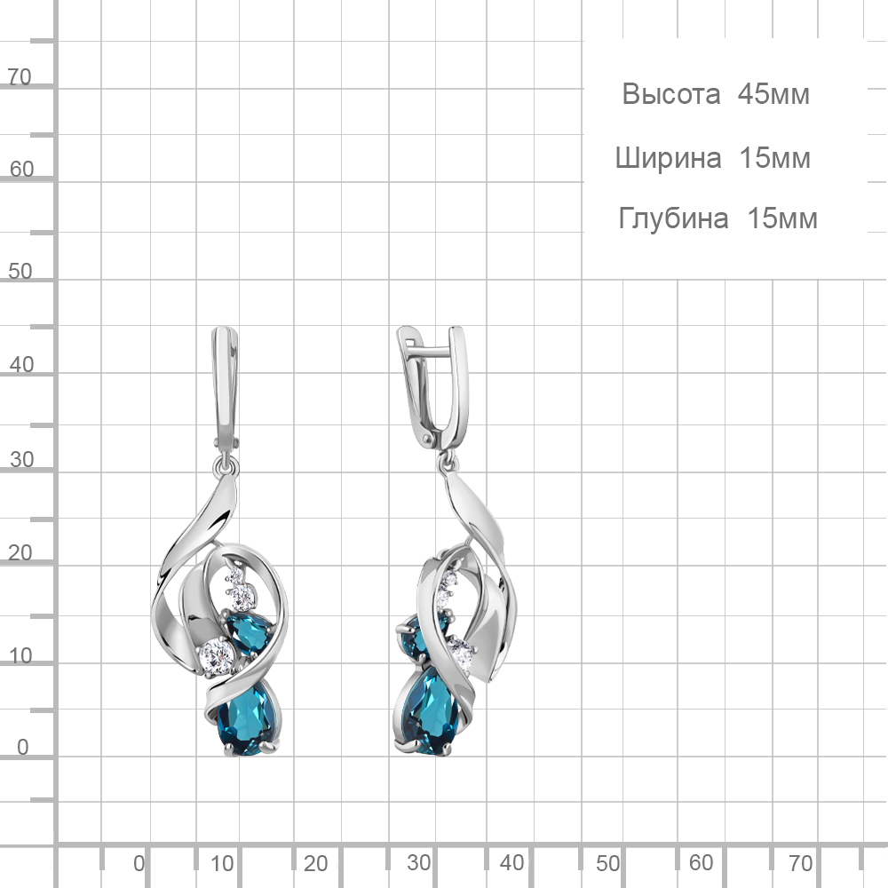 4760508А Серьги из Серебра с топазами лондон блю, фианитами