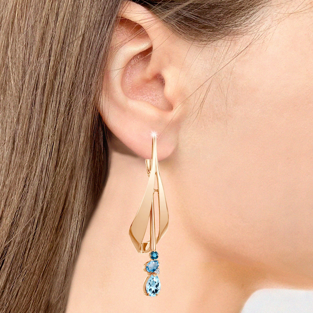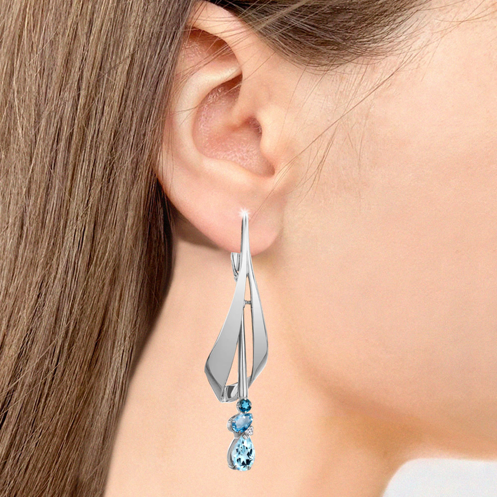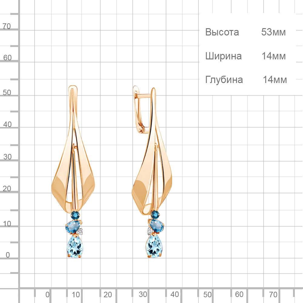 4761666А Серьги из Серебра с топазами лондон блю, топазами свисс блю, топазами скай блю, фианитами