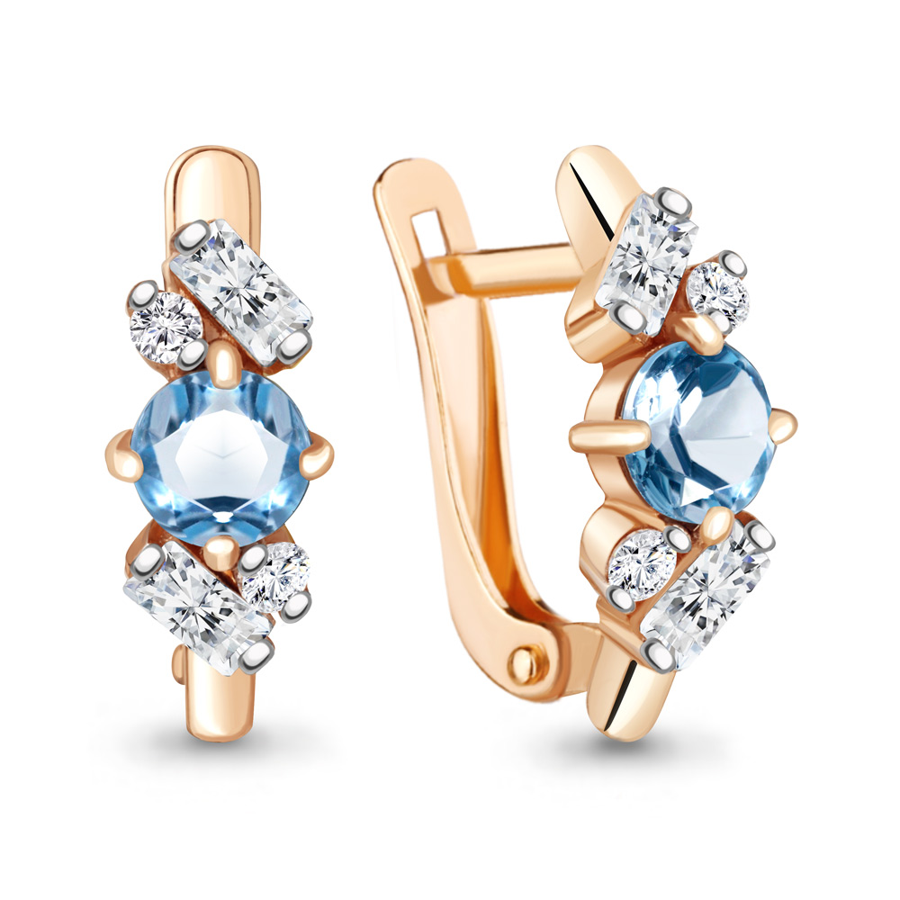 4762505А Серьги из Серебра с топазами свисс блю, фианитами