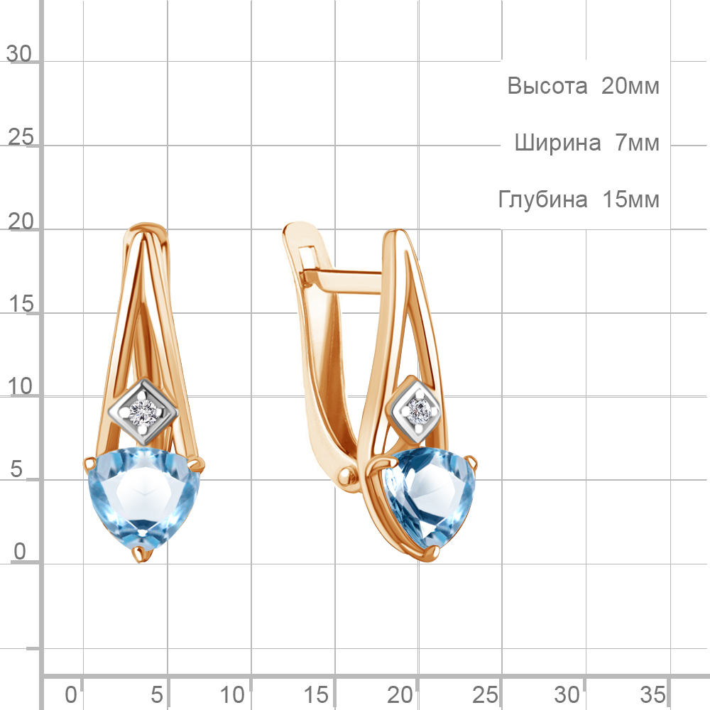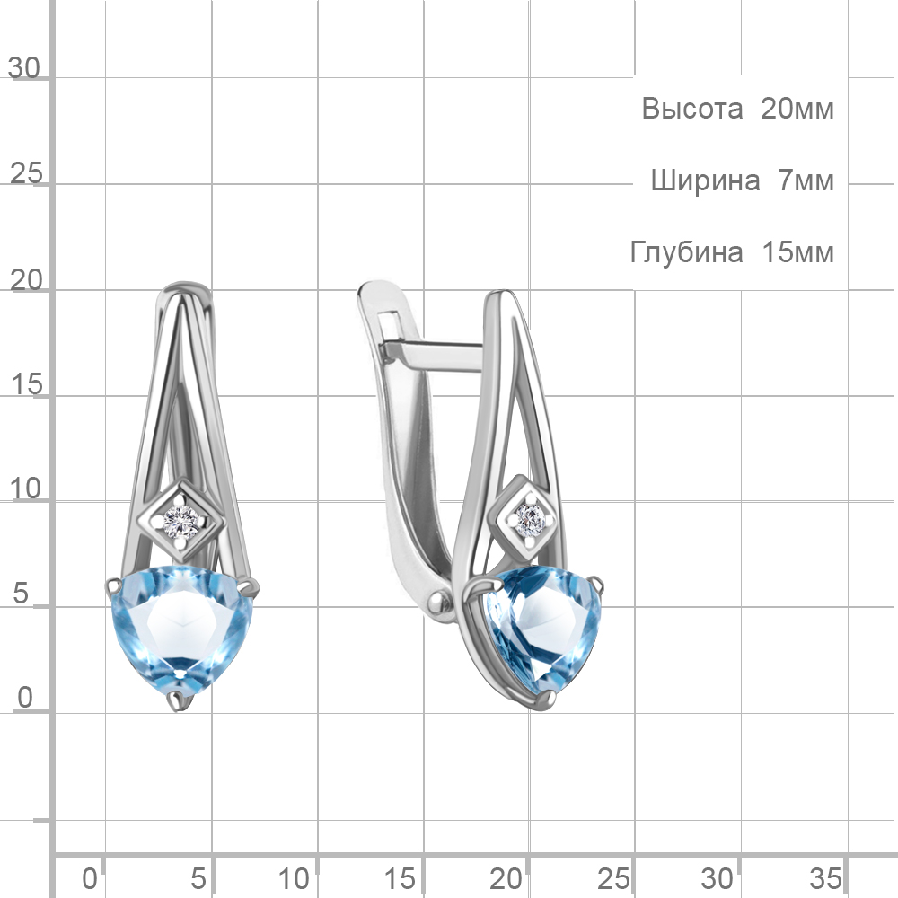 4763205А Серьги из Серебра с топазами свисс блю, фианитами