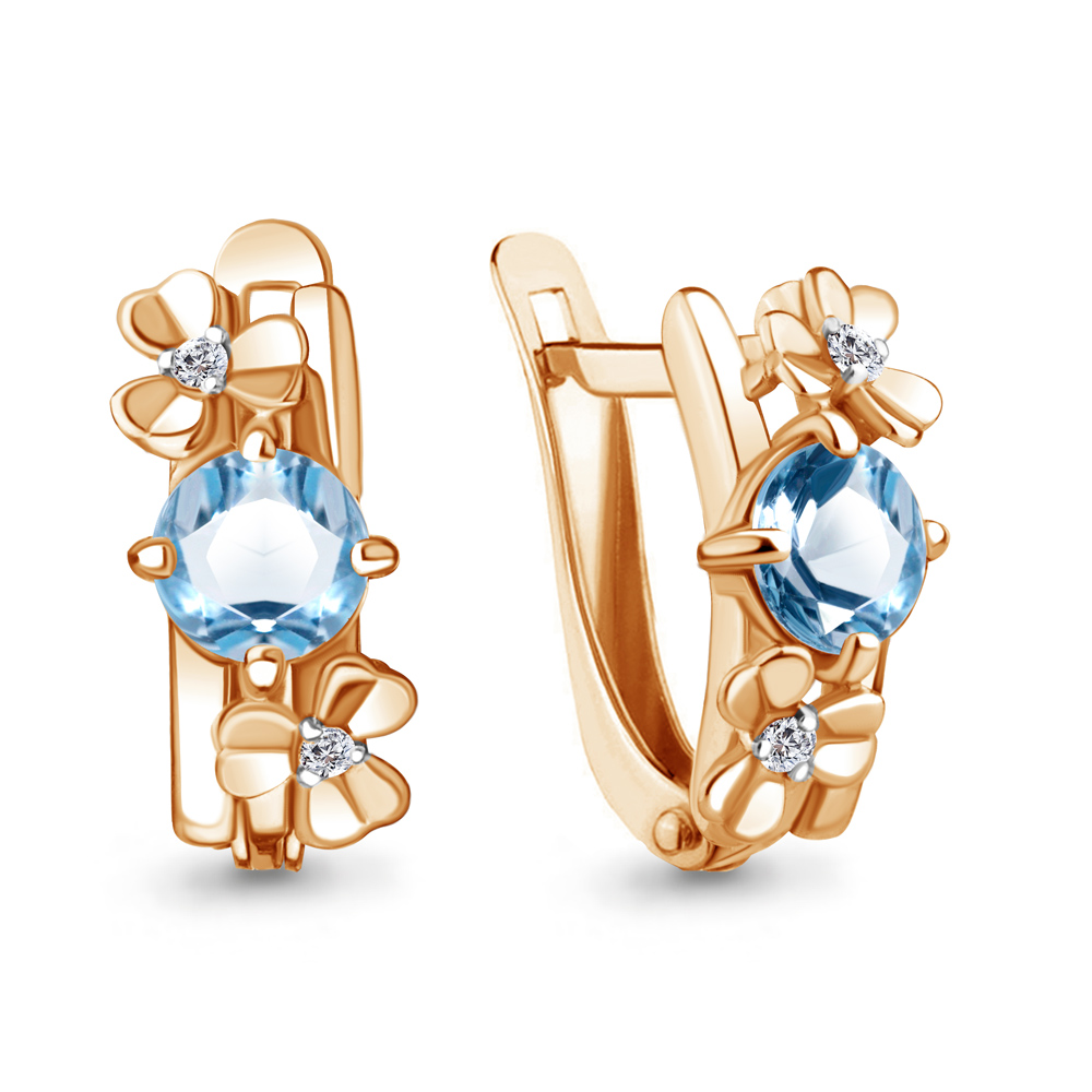 4765105А Серьги из Серебра с топазами свисс блю, фианитами