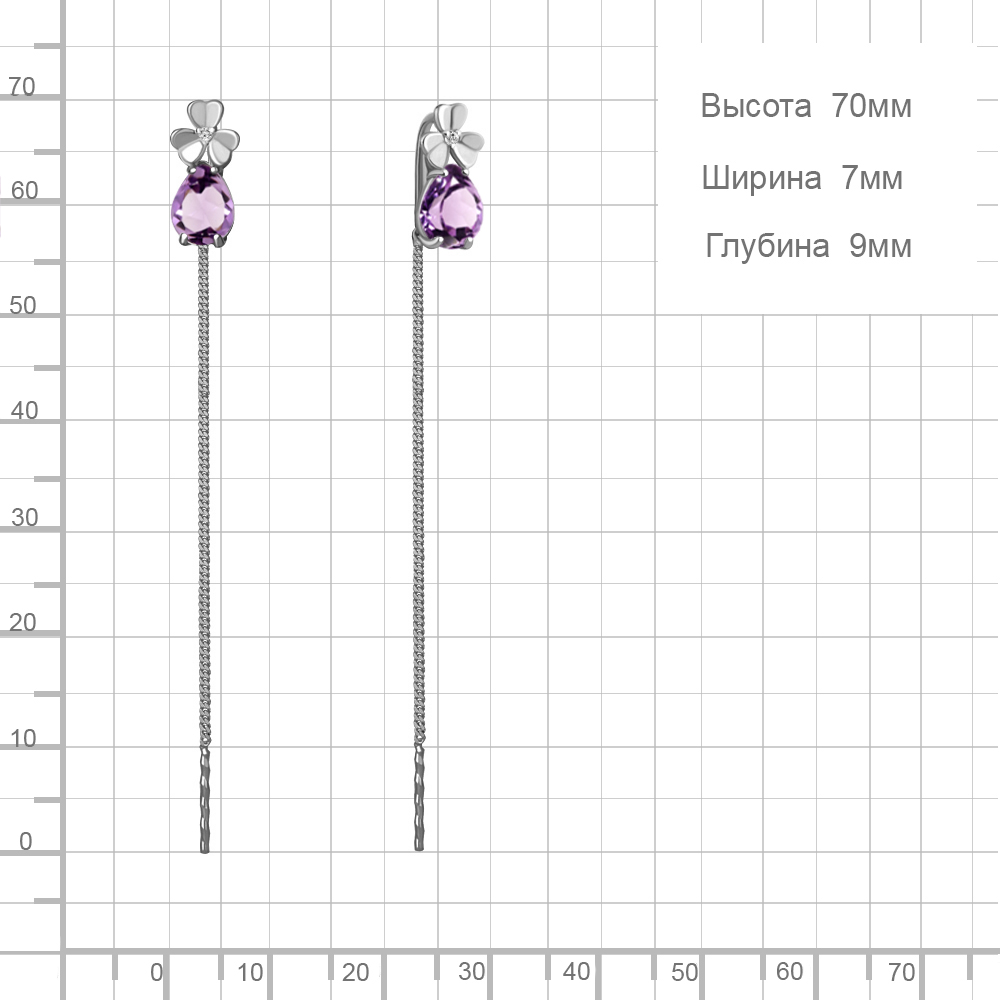 4767804А Серьги из Серебра с аметистами, фианитами