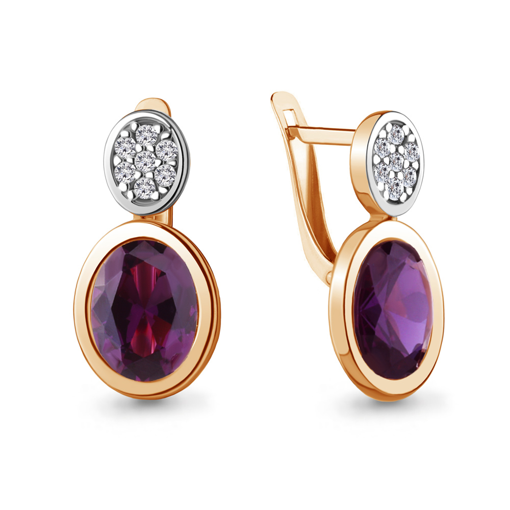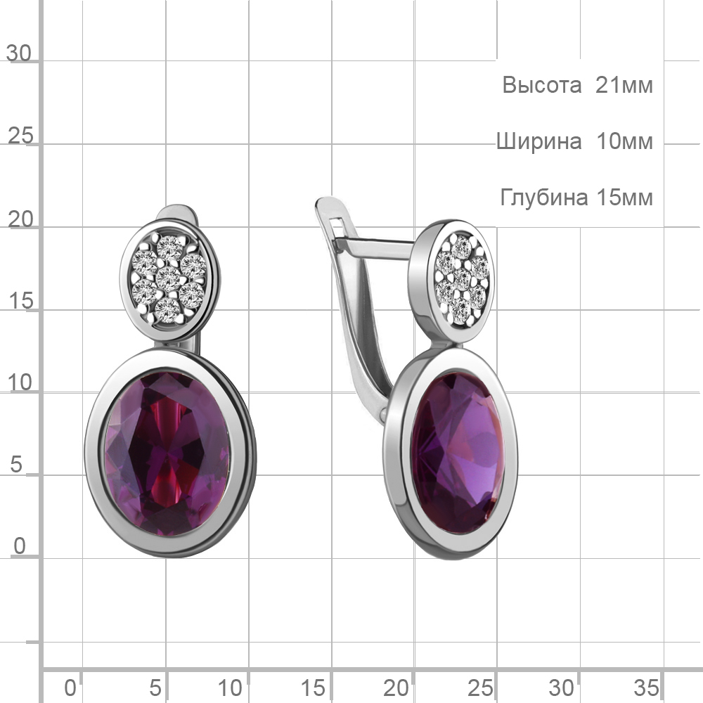 4768084А Серьги из Серебра с наноаметистами иск., фианитами