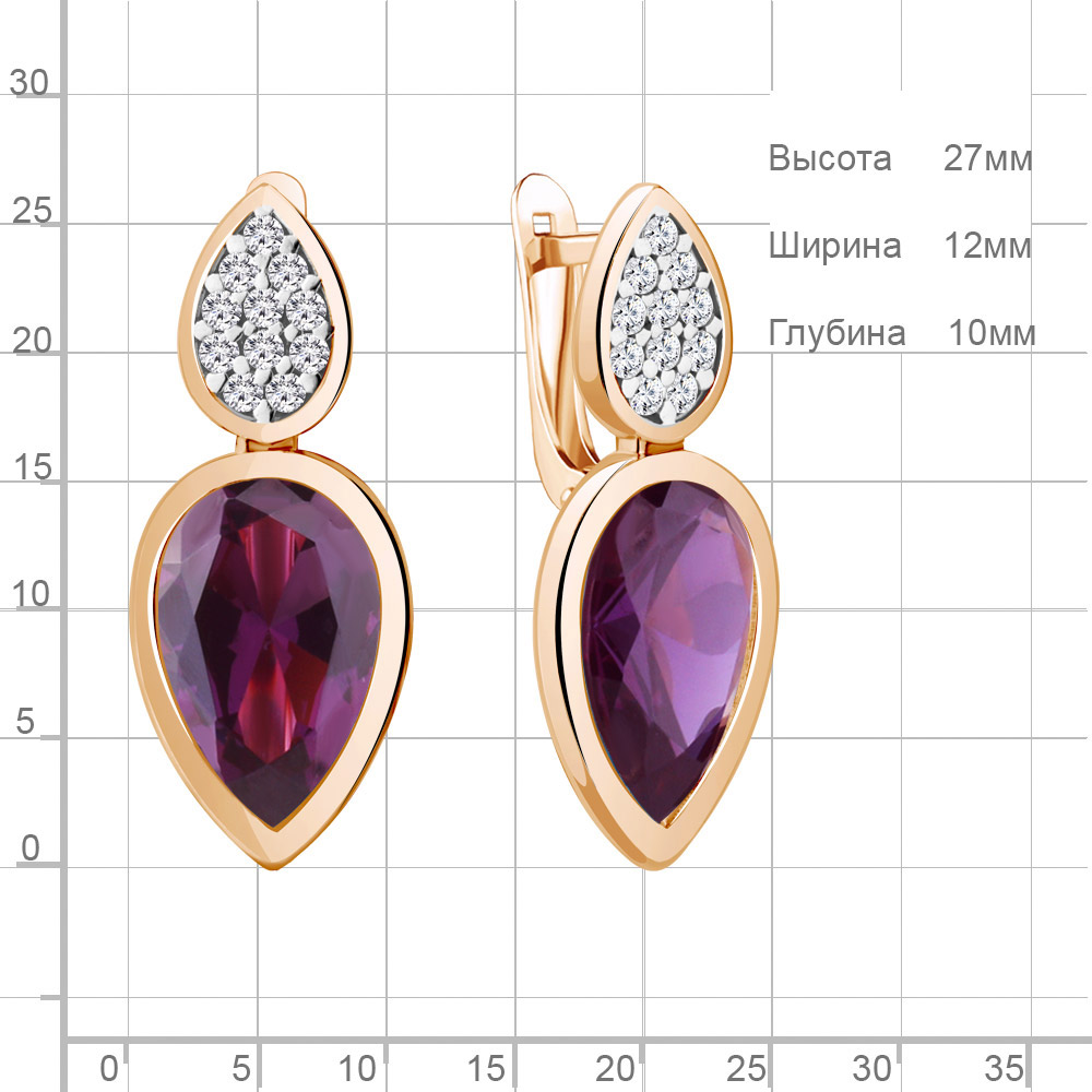 4768184А Серьги из Серебра с наноаметистами иск., фианитами