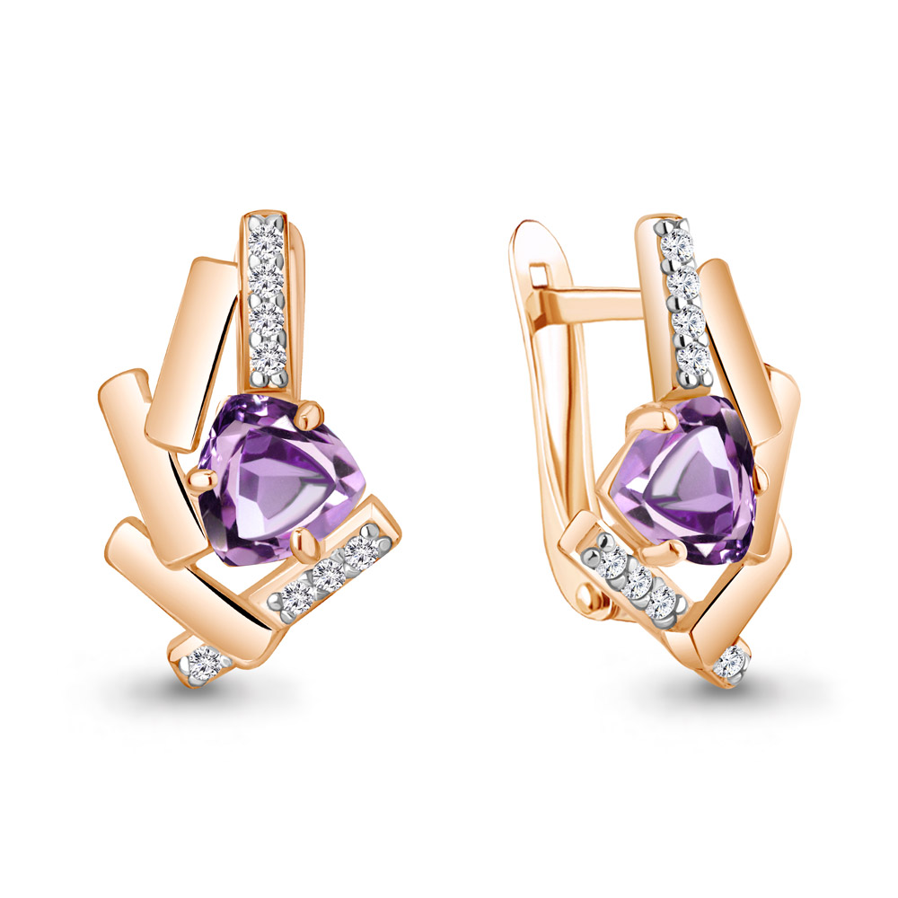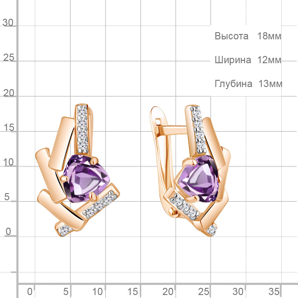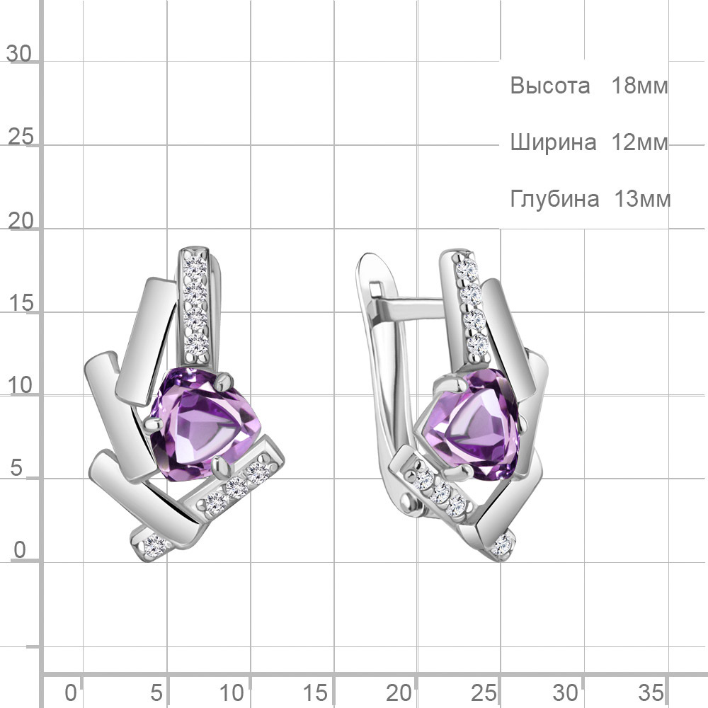 4768304А Серьги из Серебра с аметистами, фианитами
