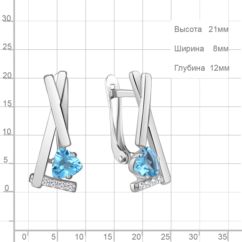 4768605А Серьги из Серебра с топазами свисс блю, фианитами