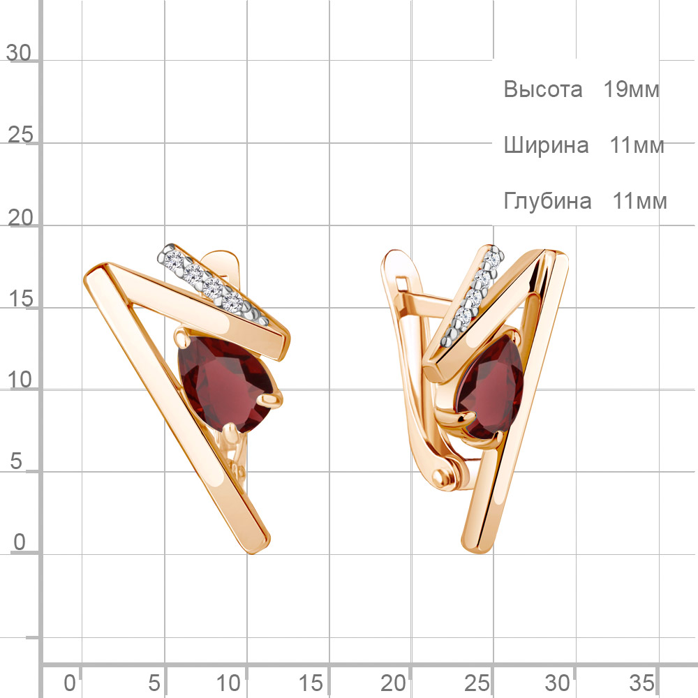 4768703А Серьги из Серебра с гранатами, фианитами