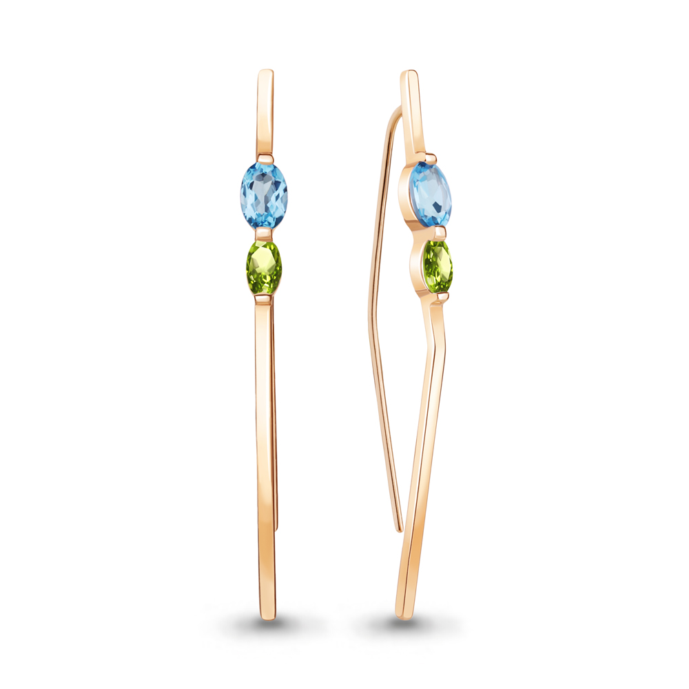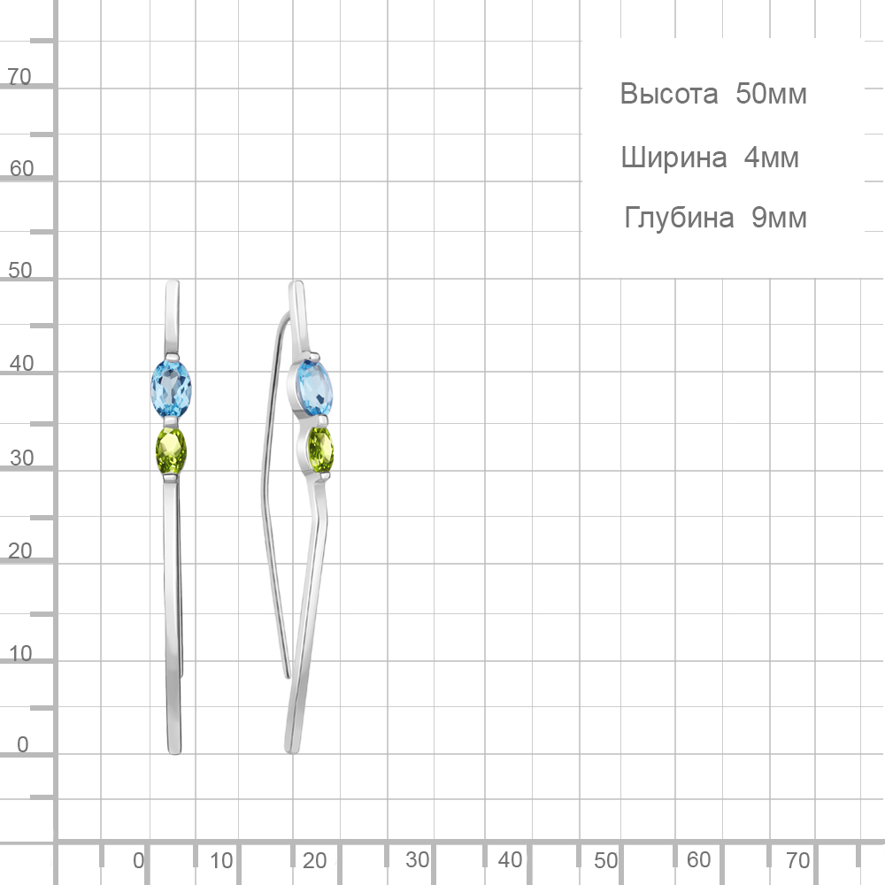 4772231 Серьги из Серебра с топазами свисс блю, хризолитами