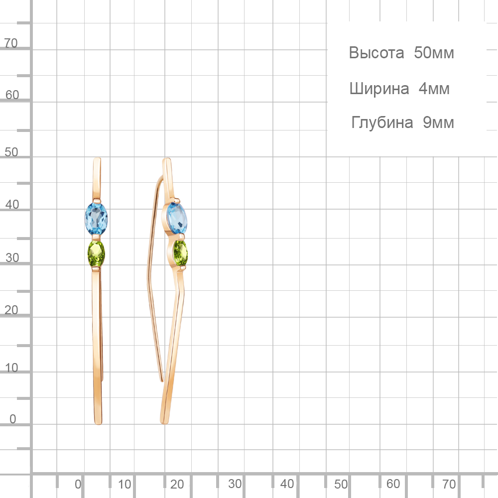 Описание камней 2 Топаз Свисс Блю; 2 Хризолит