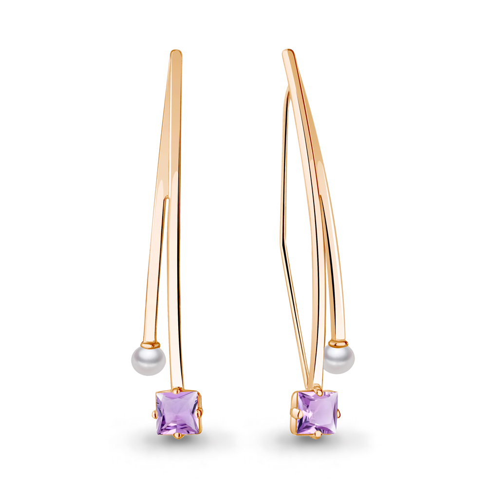4772304 Серьги из Серебра с аметистами, культ. жемчугом  ааа