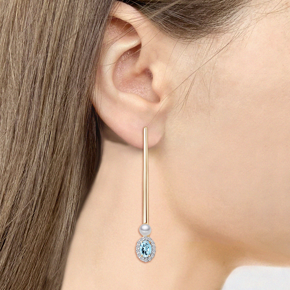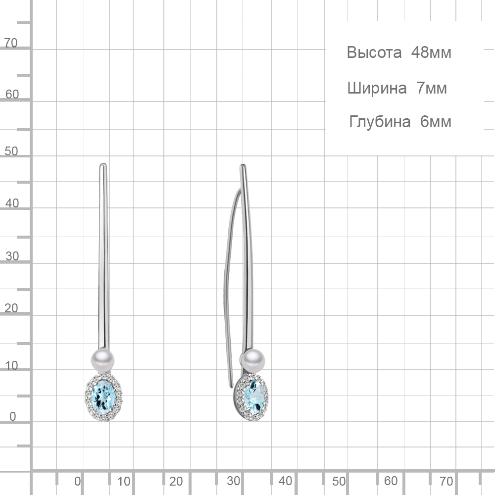 4772402А Серьги из Серебра с культ. жемчугом ааа, топазами скай блю, фианитами