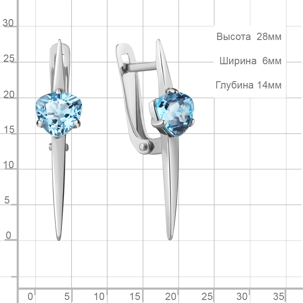 4773505 Серьги из Серебра с топазами свисс блю