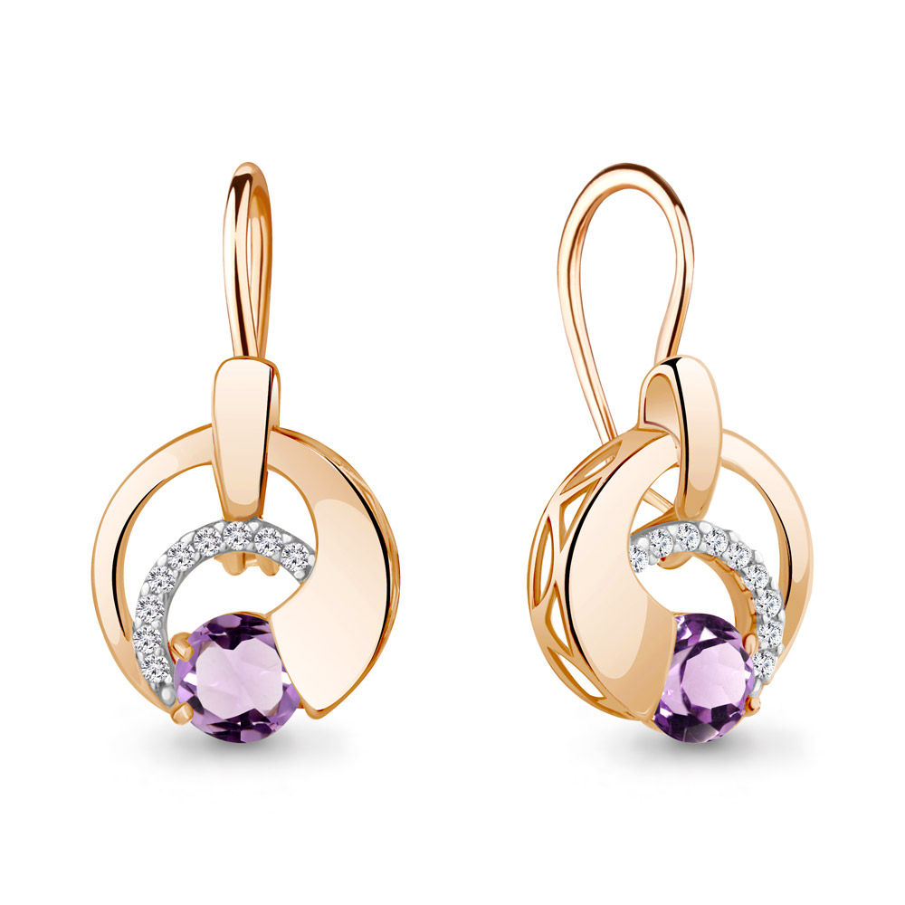 4774404А Серьги из Серебра с аметистами, фианитами