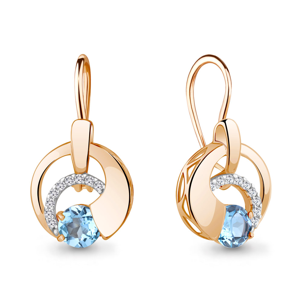 4774405А Серьги из Серебра с топазами свисс блю, фианитами