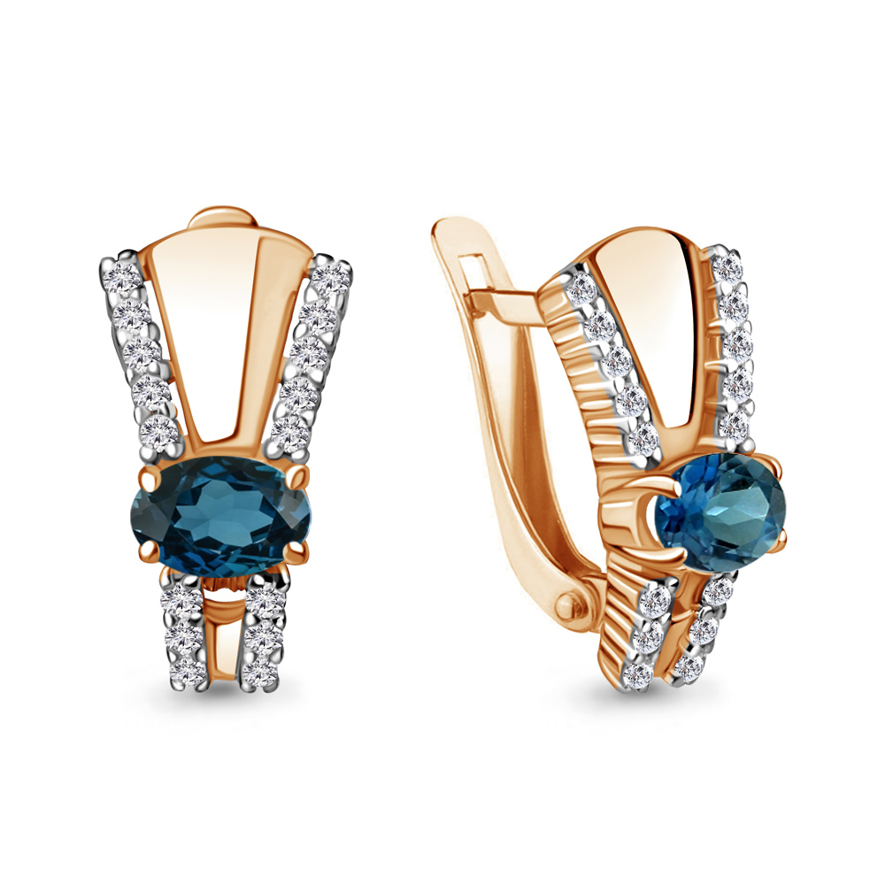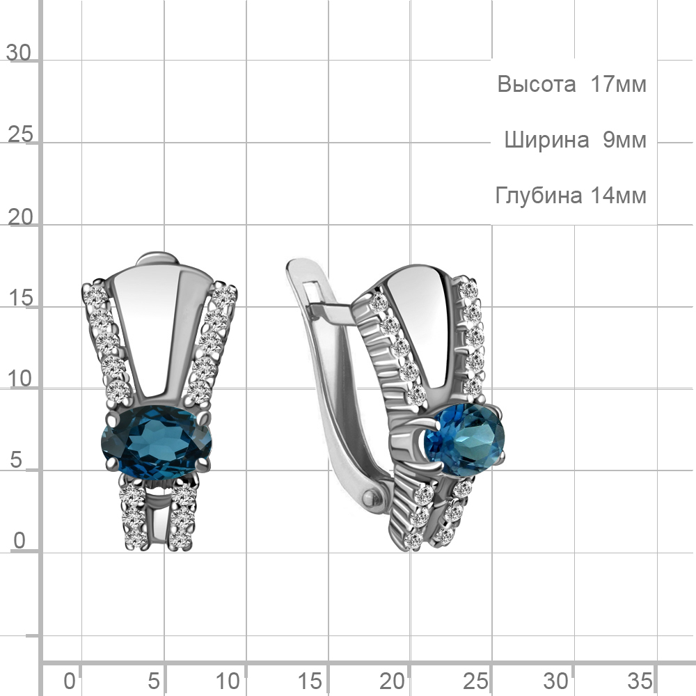 4780608А Серьги из Серебра с топазами лондон блю, фианитами