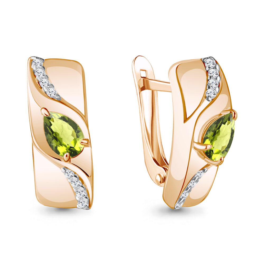 4781307А Серьги из Серебра с фианитами, хризолитами