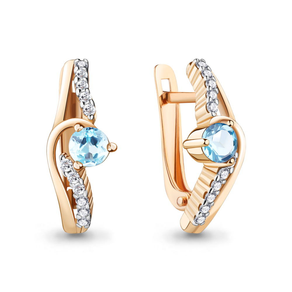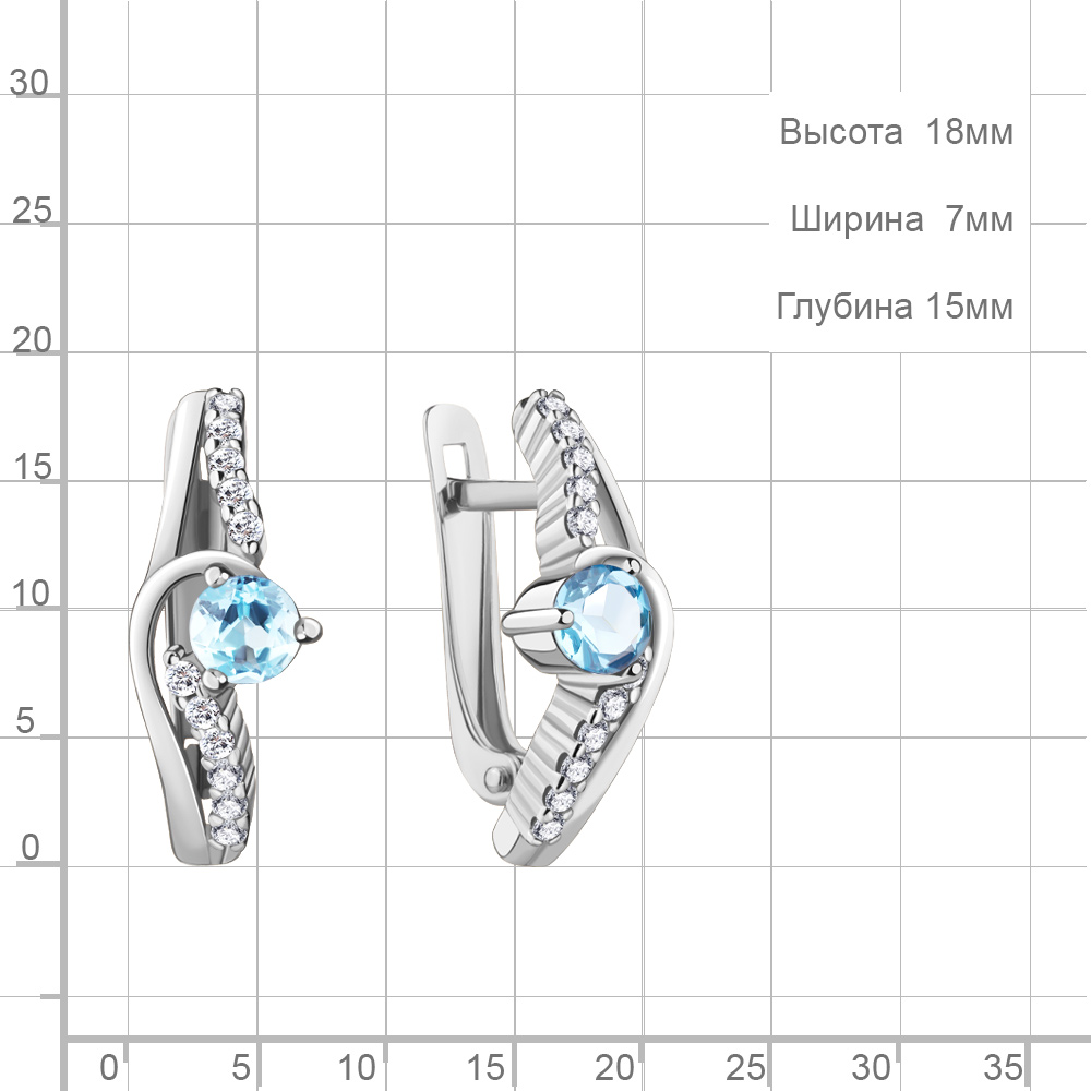 4781702А Серьги из Серебра с топазами скай блю, фианитами