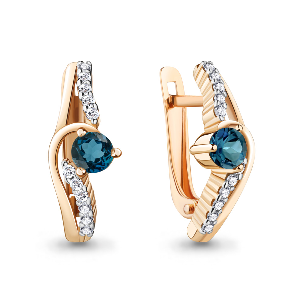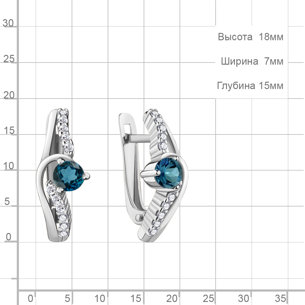 4781708А Серьги из Серебра с топазами лондон блю, фианитами