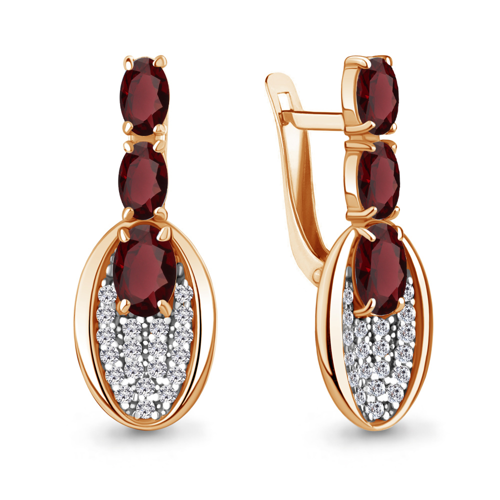 4783303А Серьги из Серебра с гранатами, фианитами