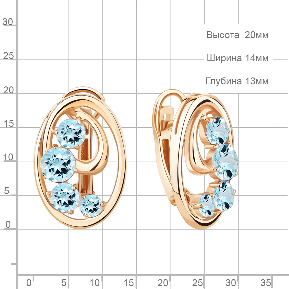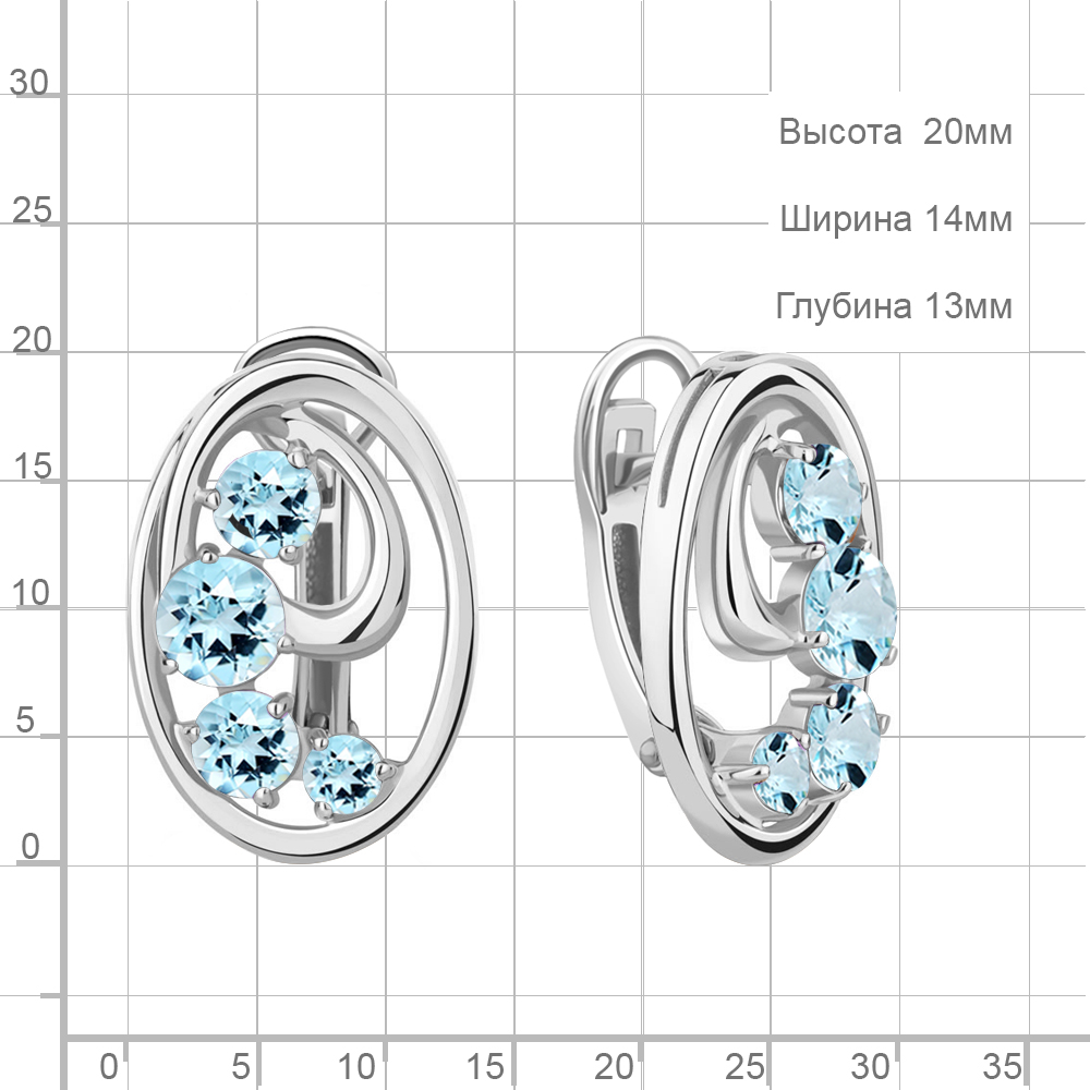 4784302 Серьги из Серебра с топазами скай блю