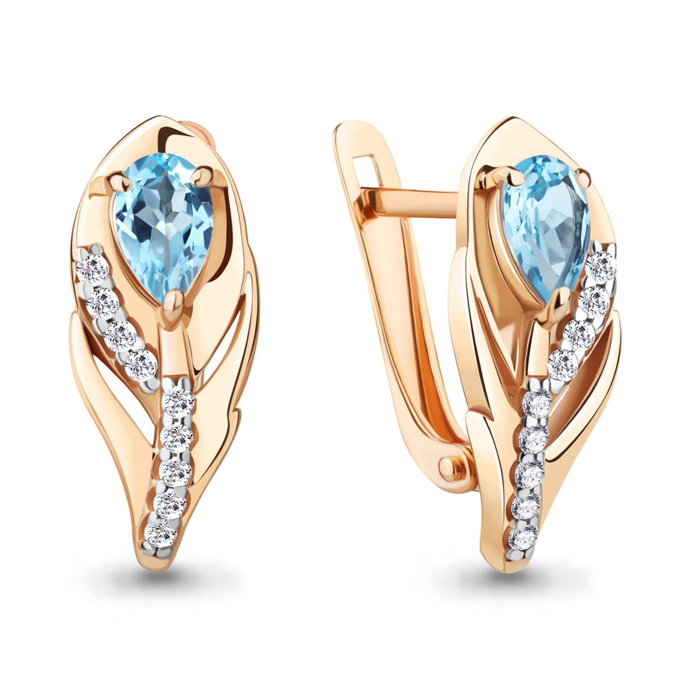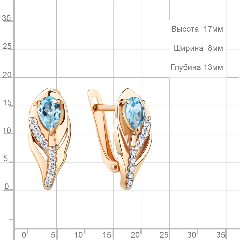 4787905А Серьги из Серебра с топазами свисс блю, фианитами