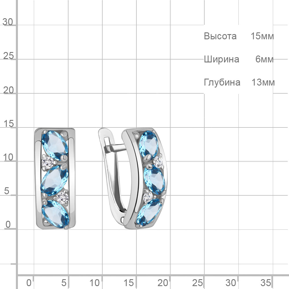 4790005А Серьги из Серебра с топазами свисс блю, фианитами