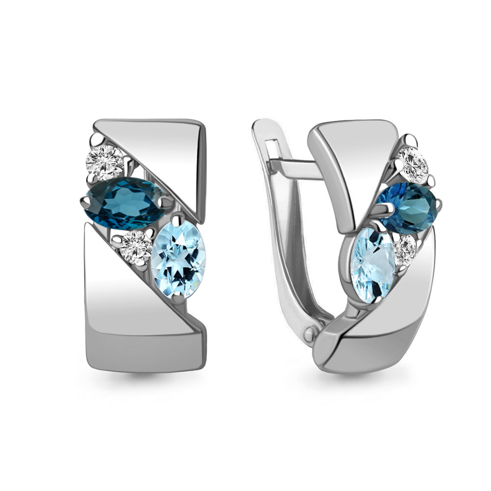 47902600 Серьги из Золота с топазами лондон блю, топазами скай блю, фианитами