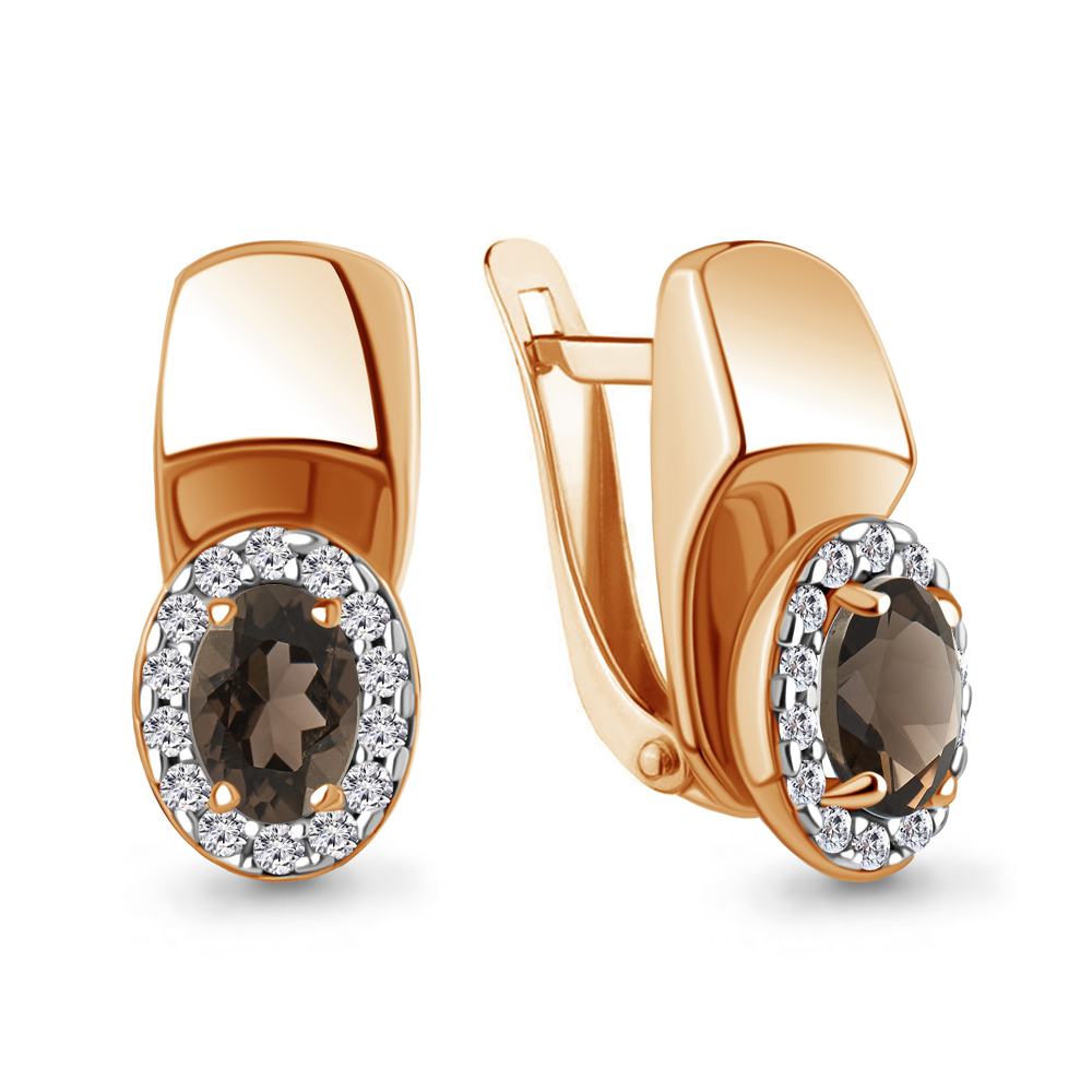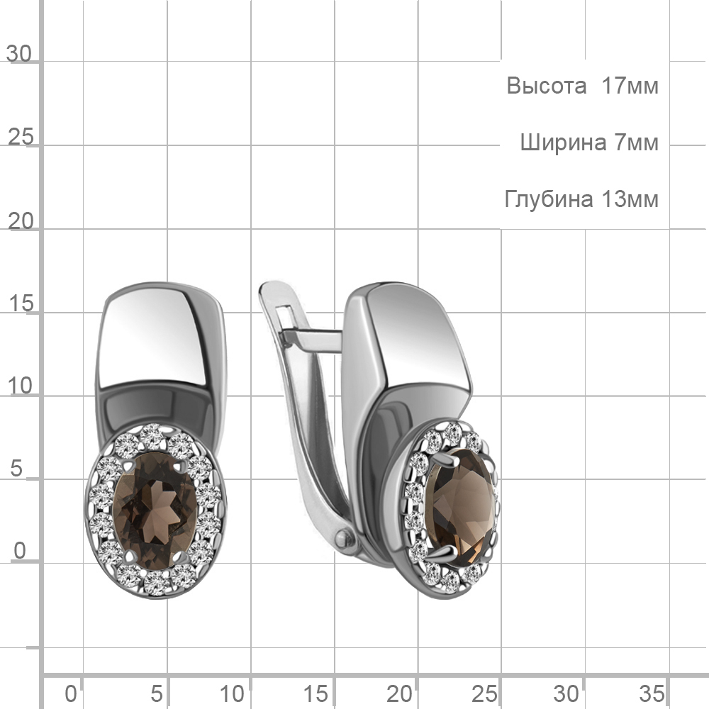 4792201А Серьги из Серебра с кварцами дымчатыми, фианитами