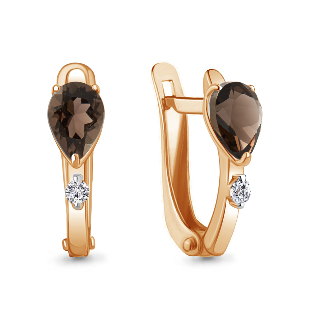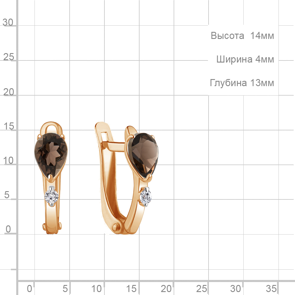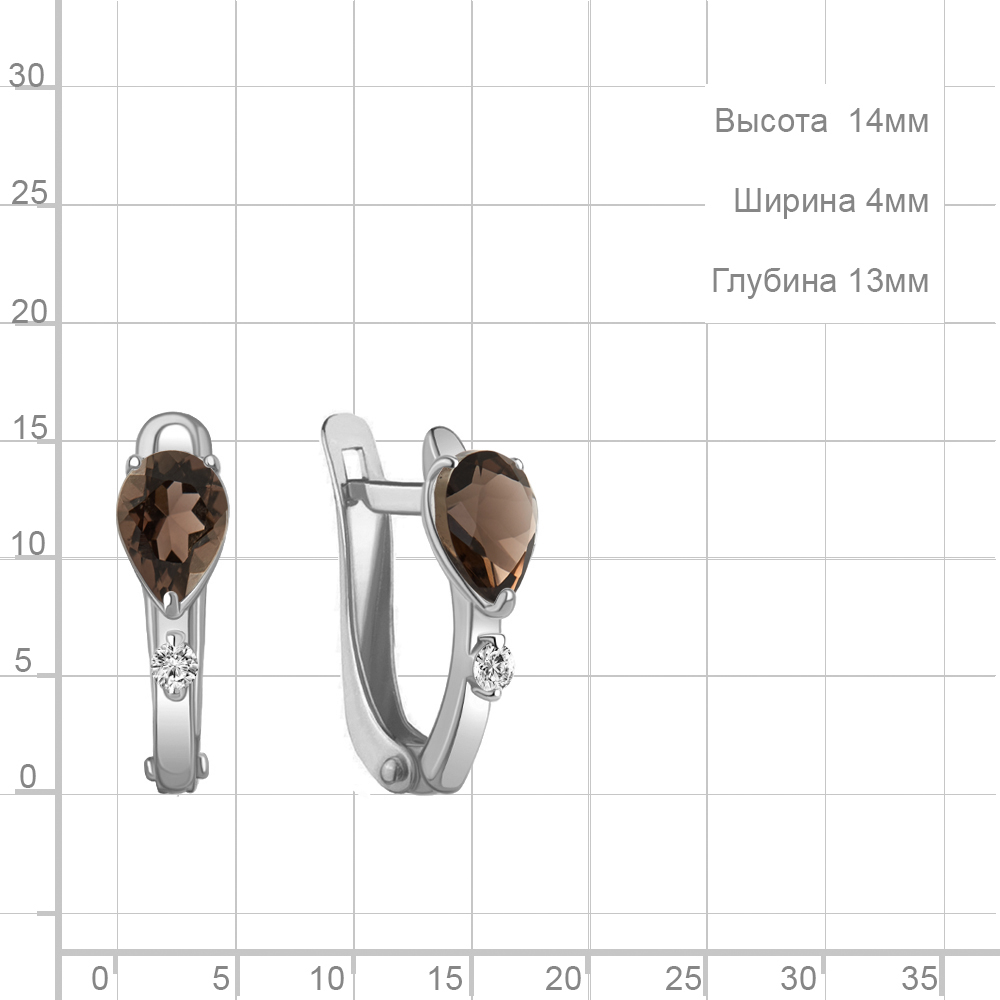 4794101А Серьги из Серебра с кварцами дымчатыми, фианитами