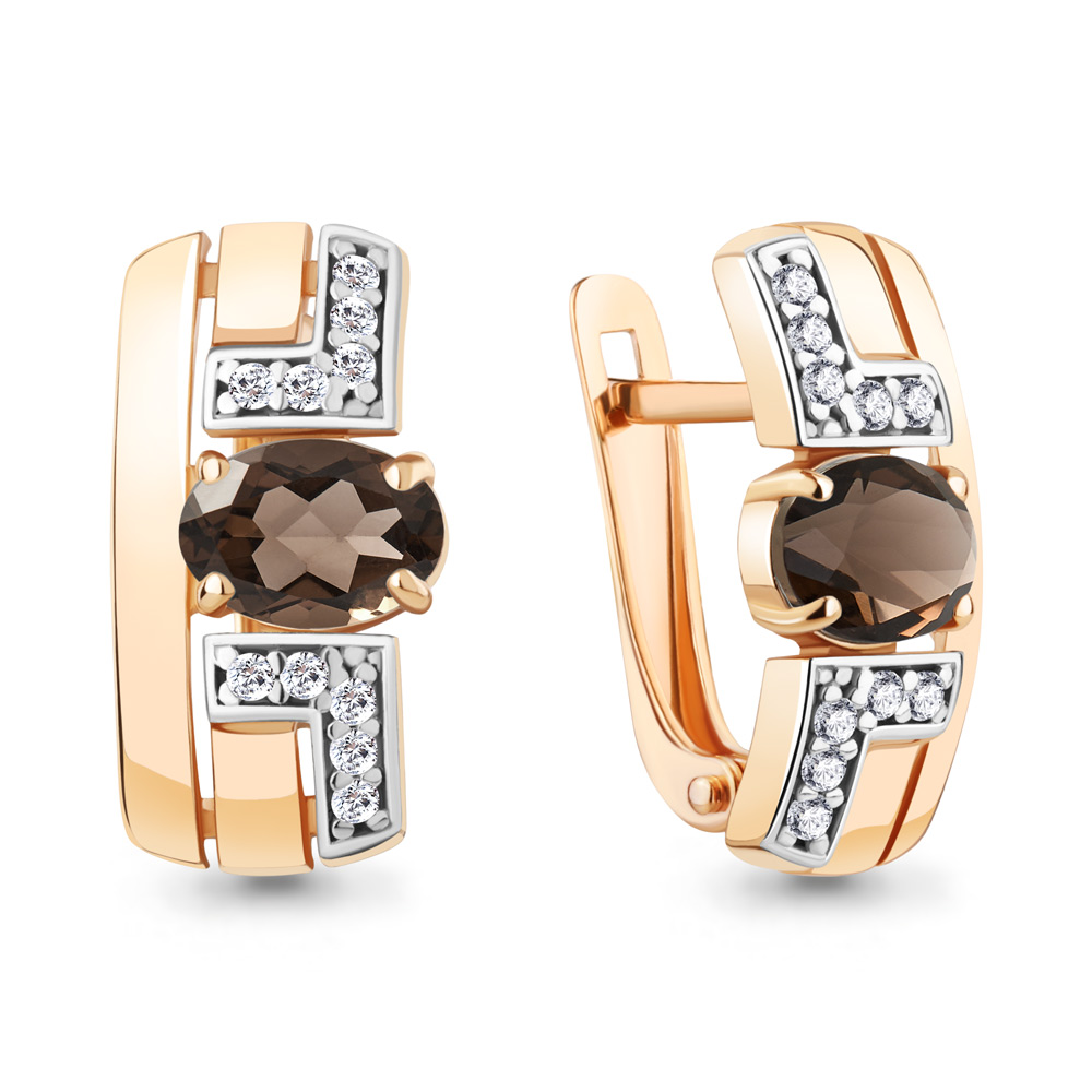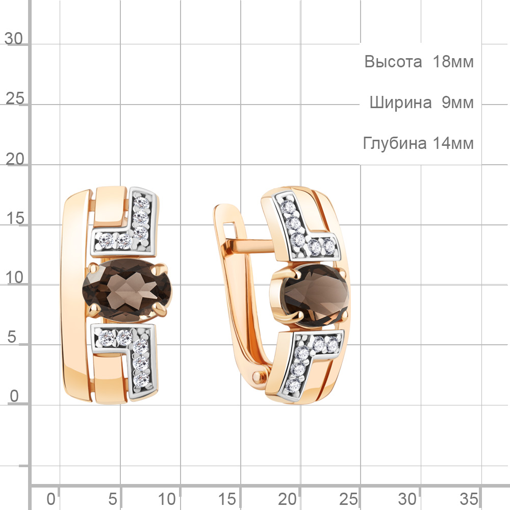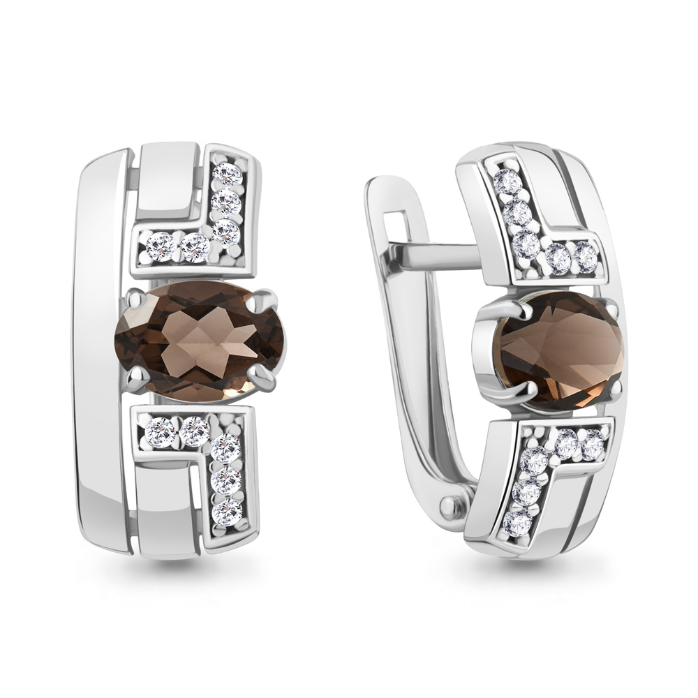 4794901А Серьги из Серебра с кварцами дымчатыми, фианитами