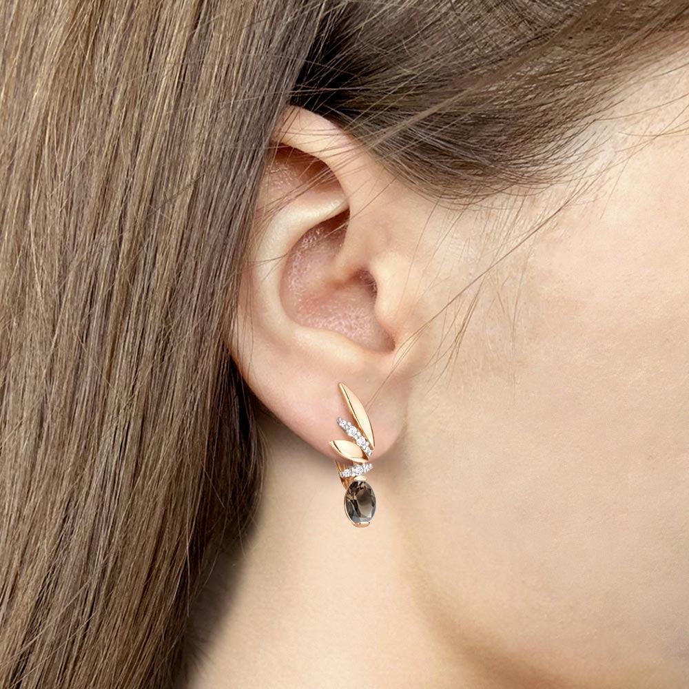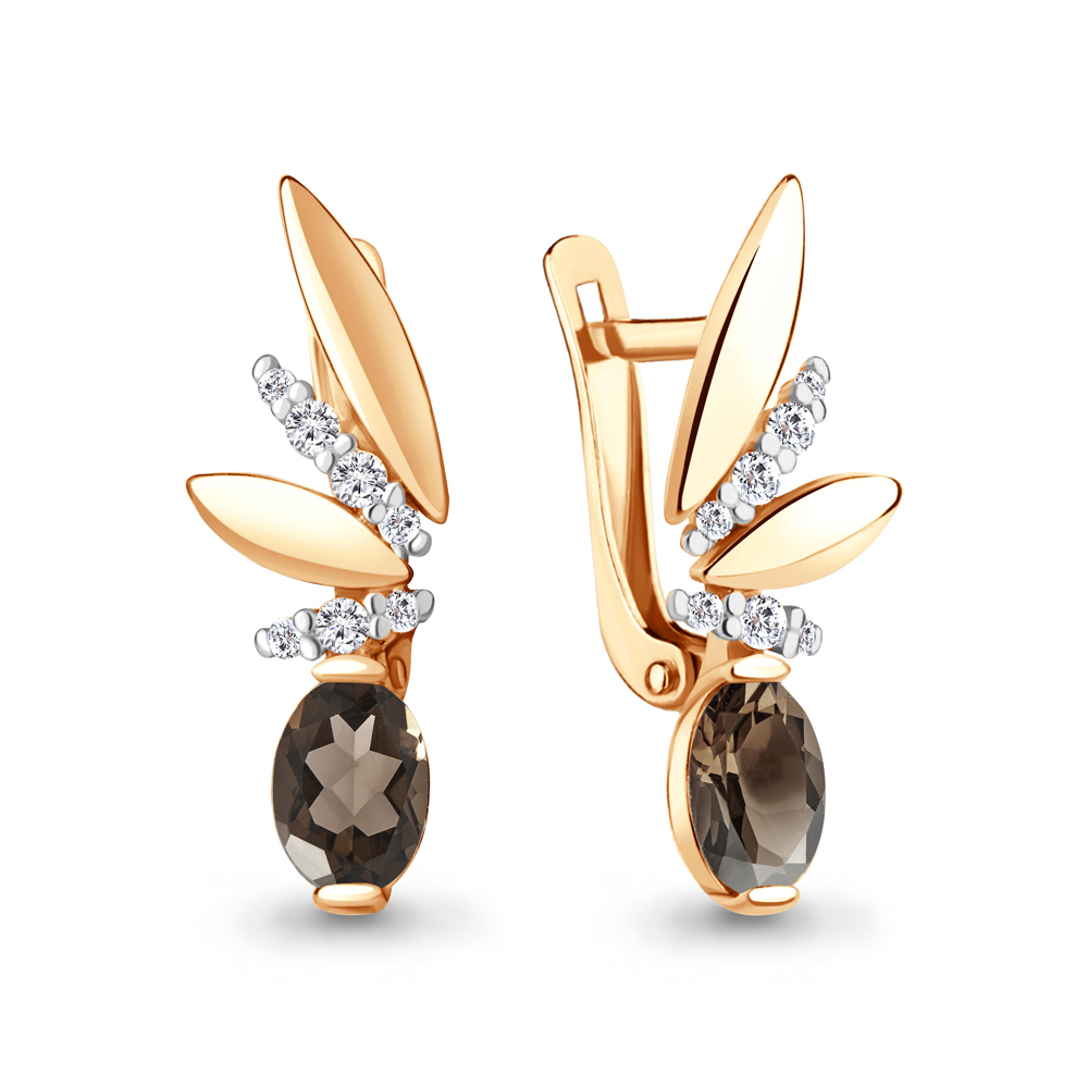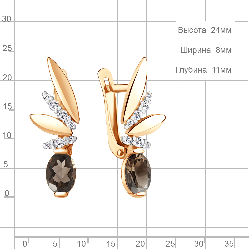 4795101А Серьги из Серебра с кварцами дымчатыми, фианитами