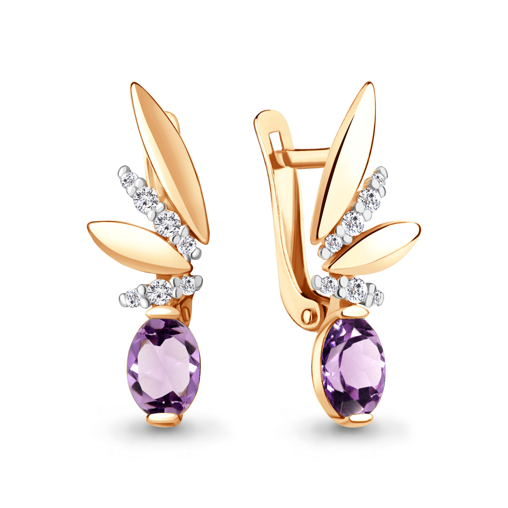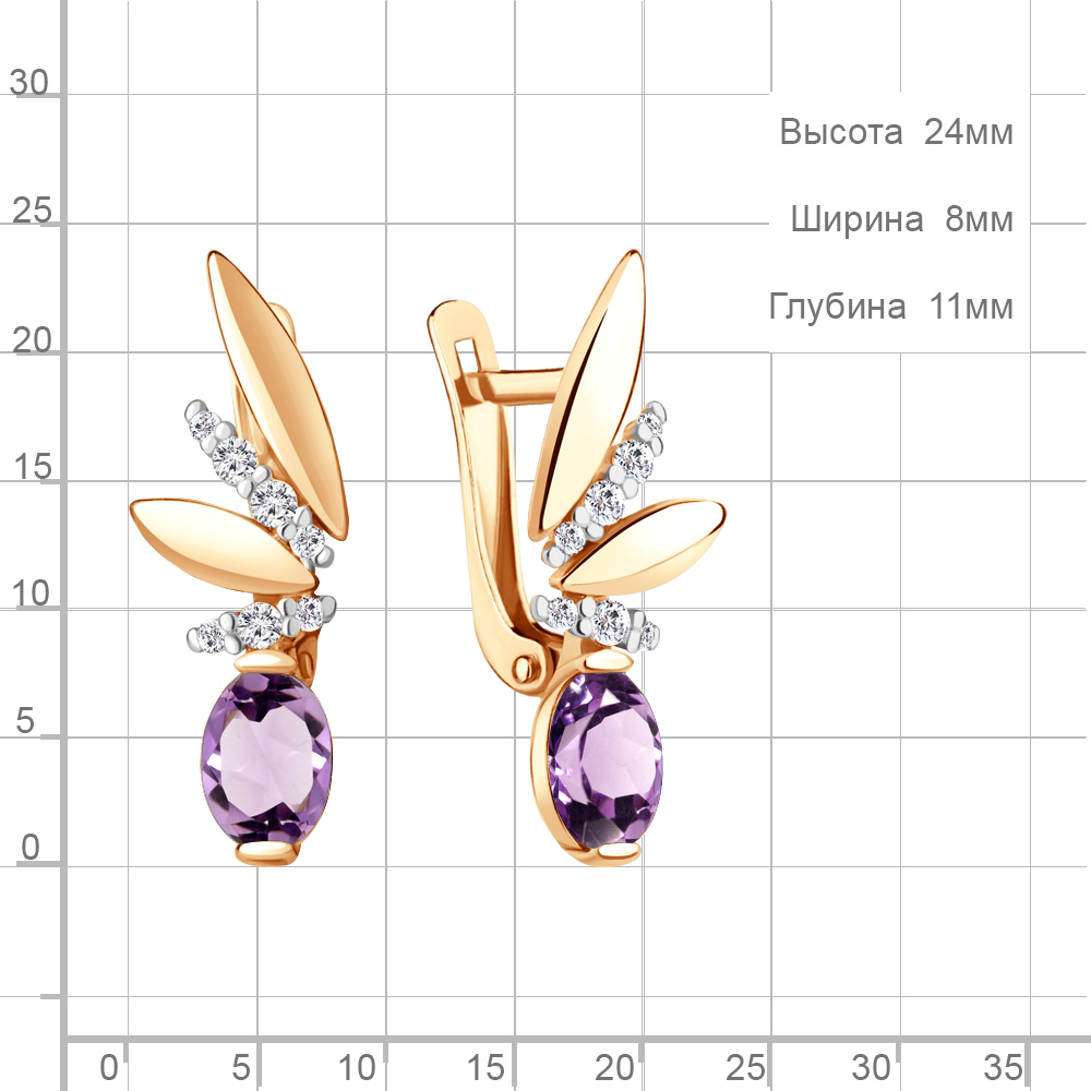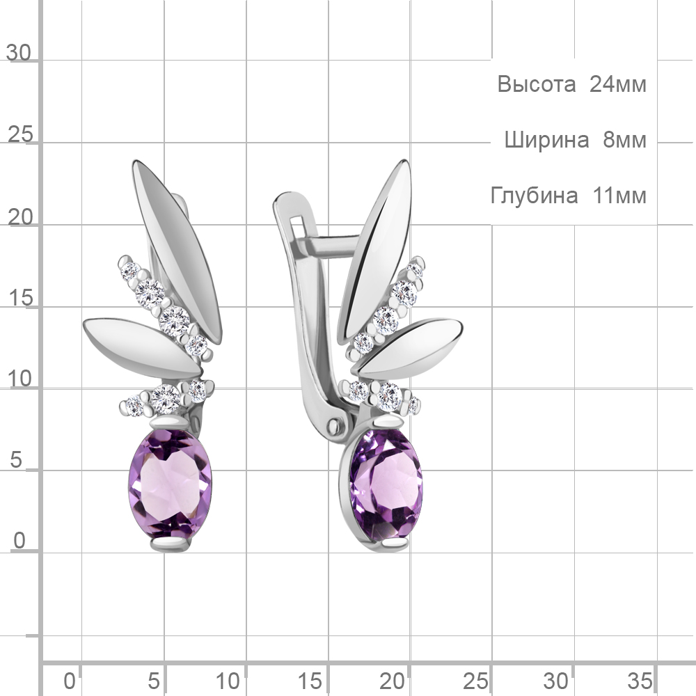 4795104А Серьги из Серебра с аметистами, фианитами