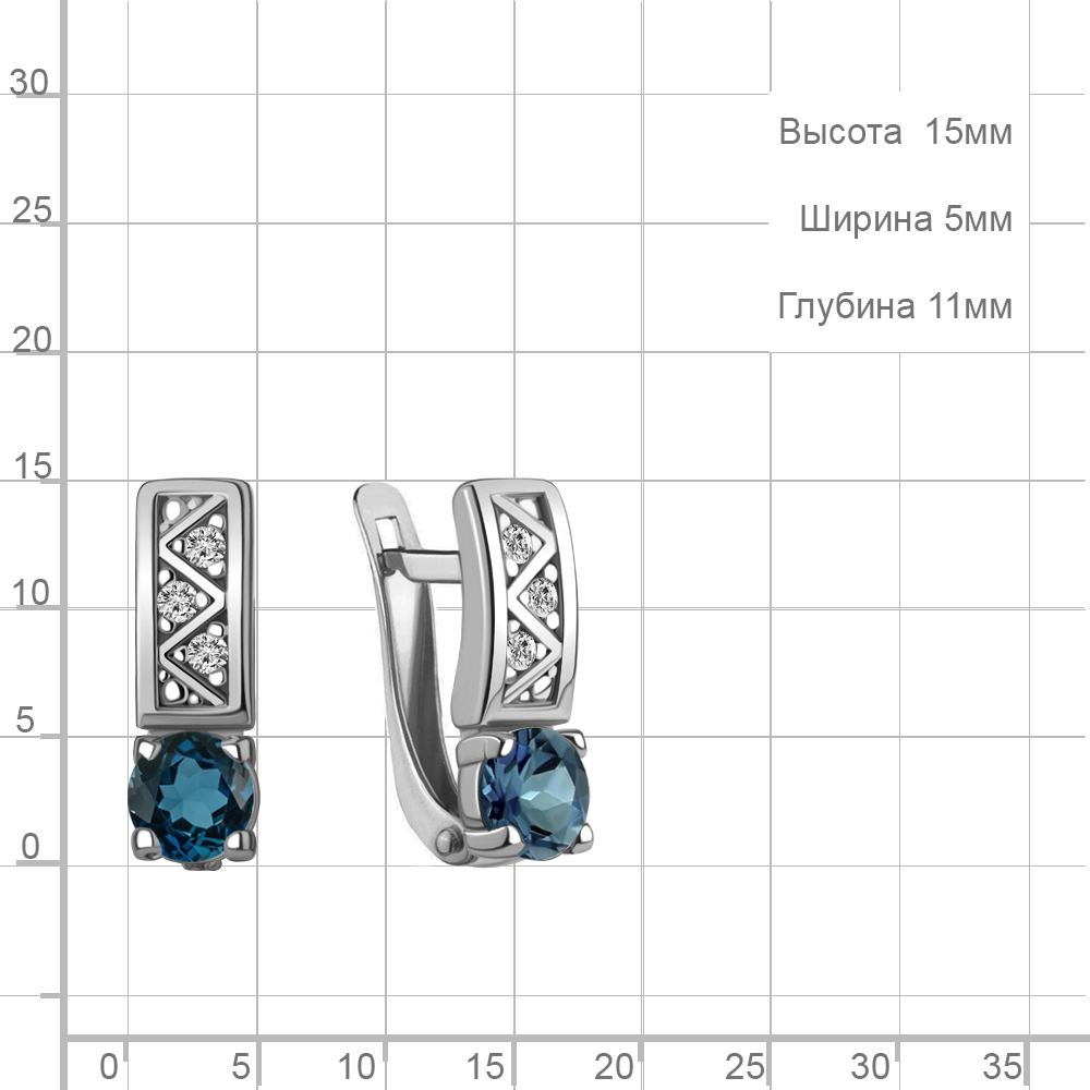 4796908А Серьги из Серебра с топазами лондон блю, фианитами