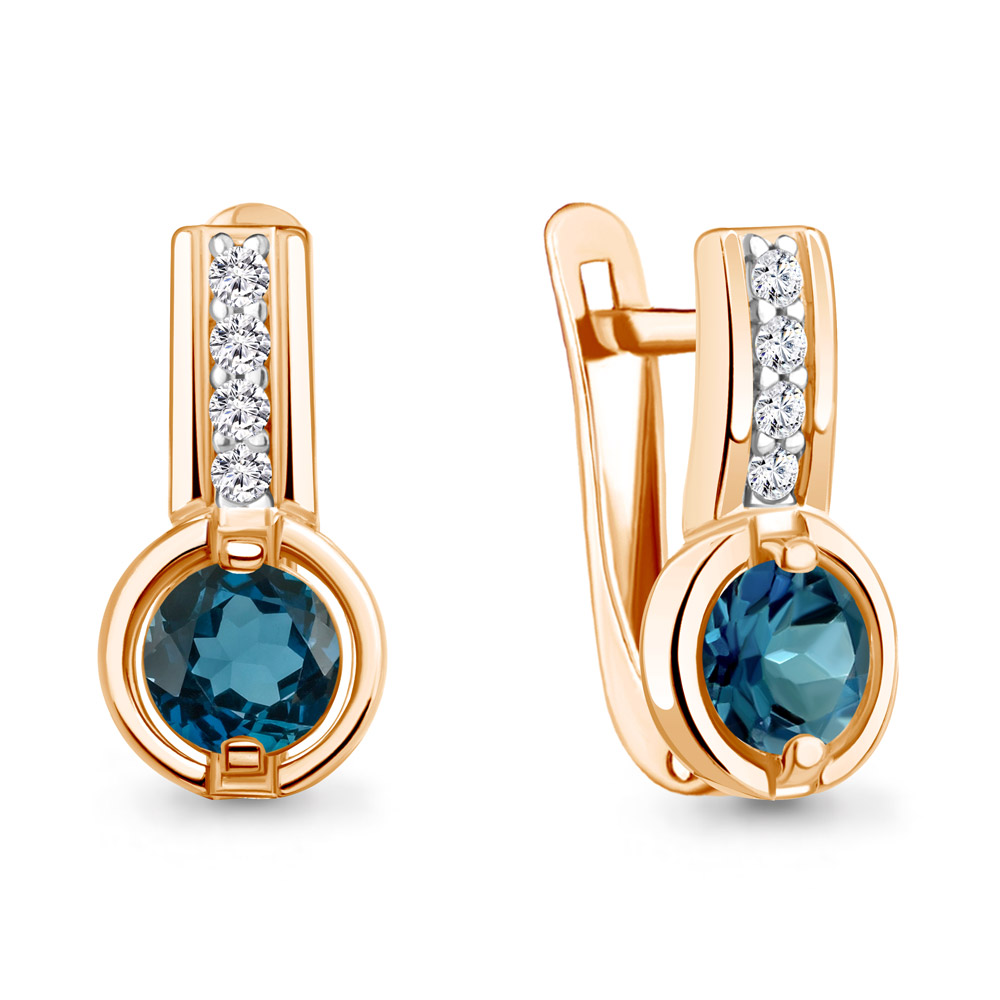 4797008А Серьги из Серебра с топазами лондон блю, фианитами