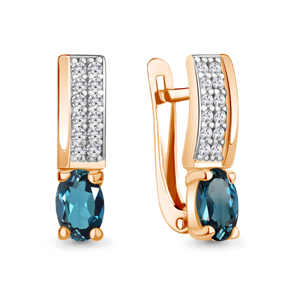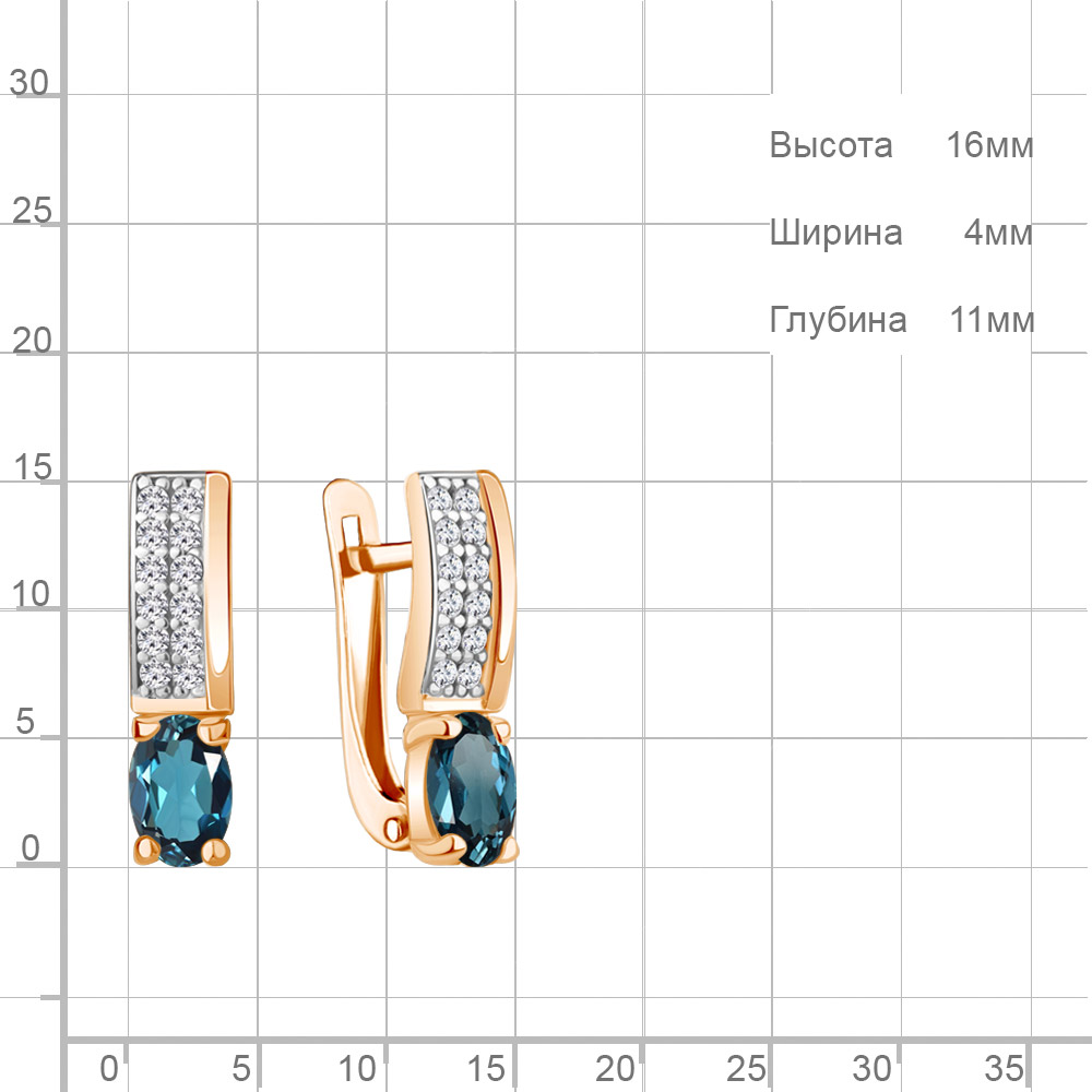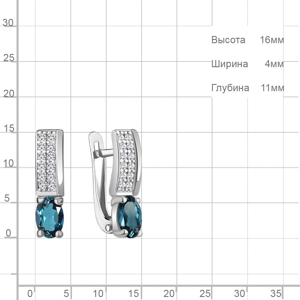 4797508А Серьги из Серебра с топазами лондон блю, фианитами