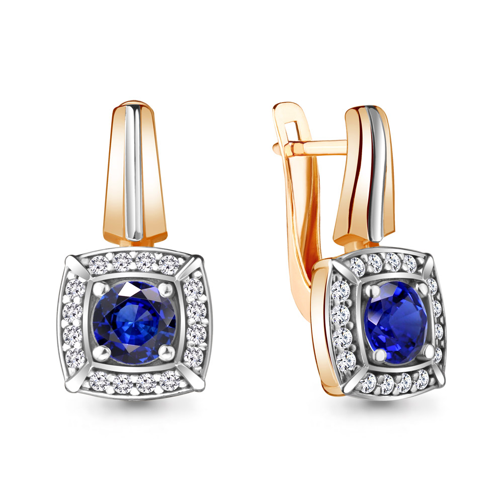 48356АБ Серьги из Серебра с наносапфирами, фианитами из коллекции "Клеопатра"