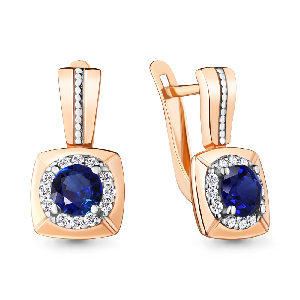 48357АБ Серьги из Серебра с наносапфирами, фианитами из коллекции "Клеопатра"
