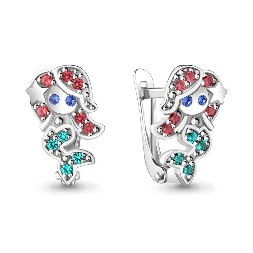 48658БВГ Серьги из Серебра с наносапфирами, нанотурмалинами из коллекции "Happy"