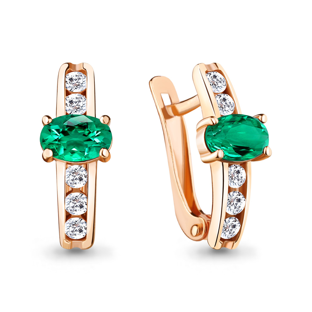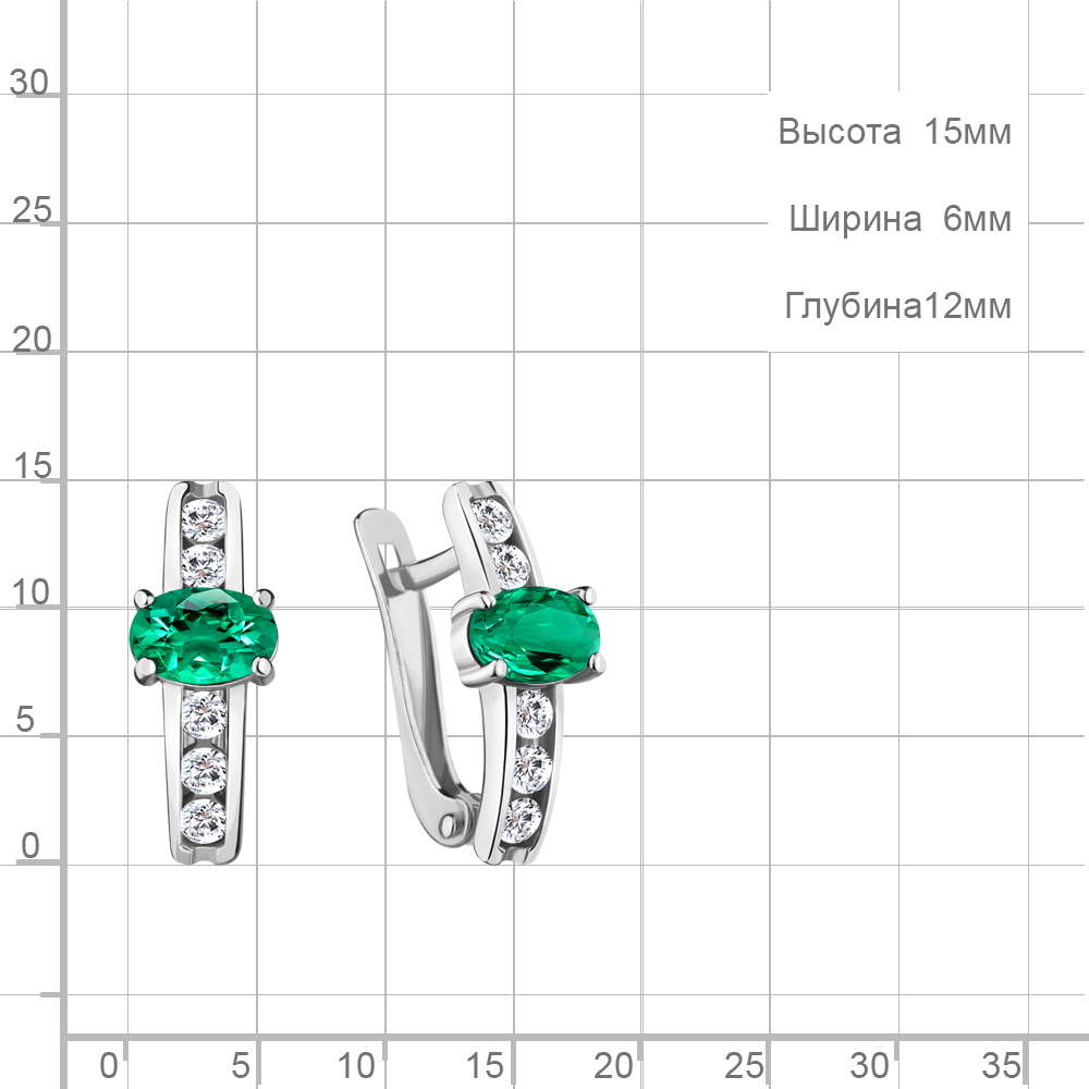 48814АГ Серьги из Серебра с наноизумрудами, фианитами
