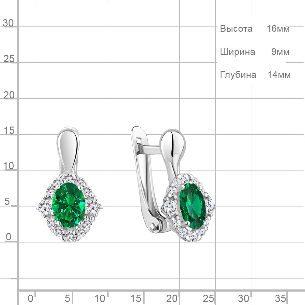 49176АГ Серьги из Серебра с наноизумрудами, фианитами из коллекции "Клеопатра"