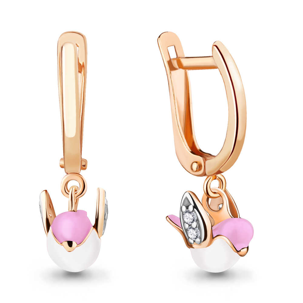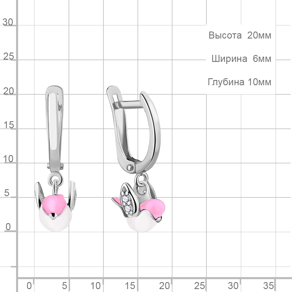 49279А Серьги из Серебра с фианитами, эмалью из коллекции "Happy"