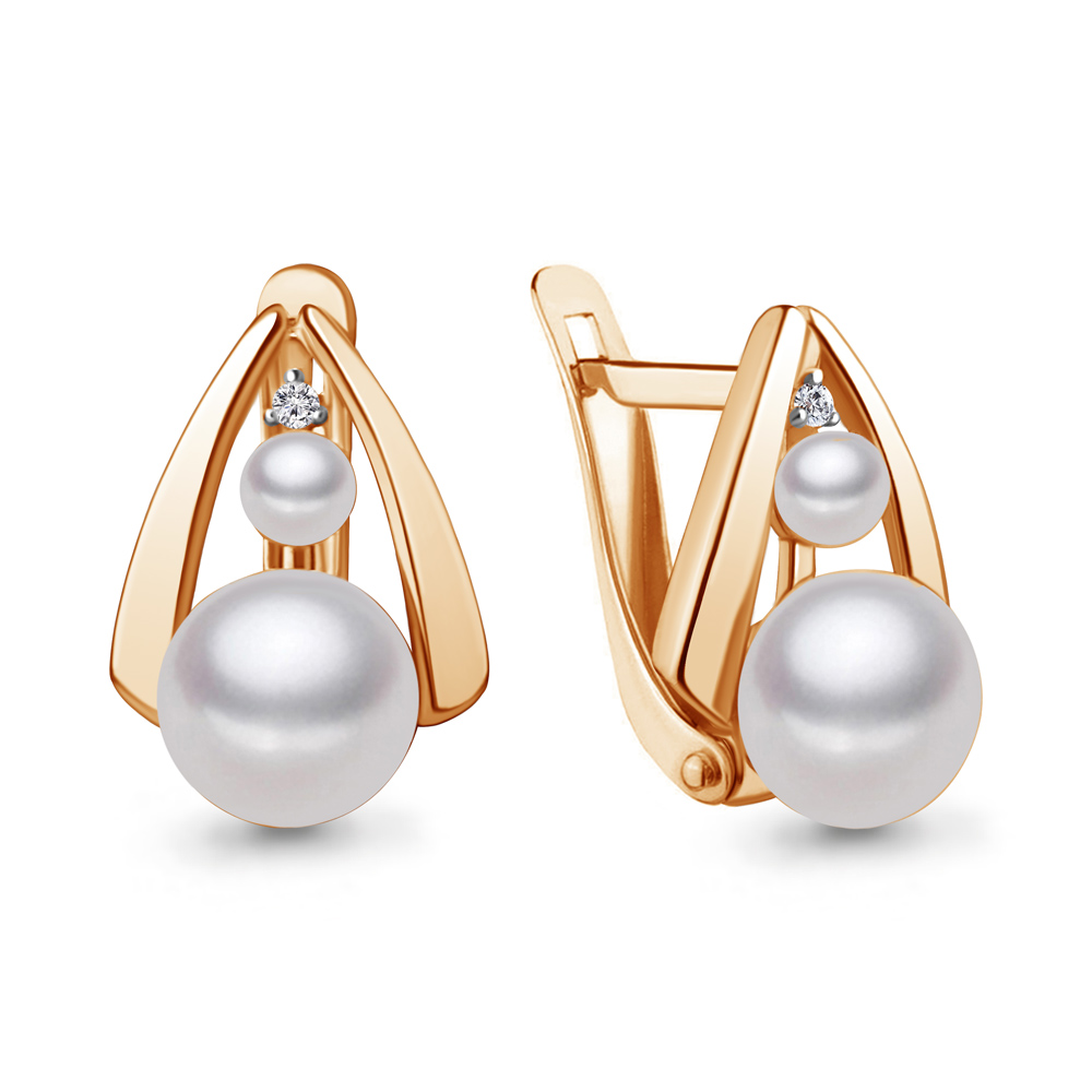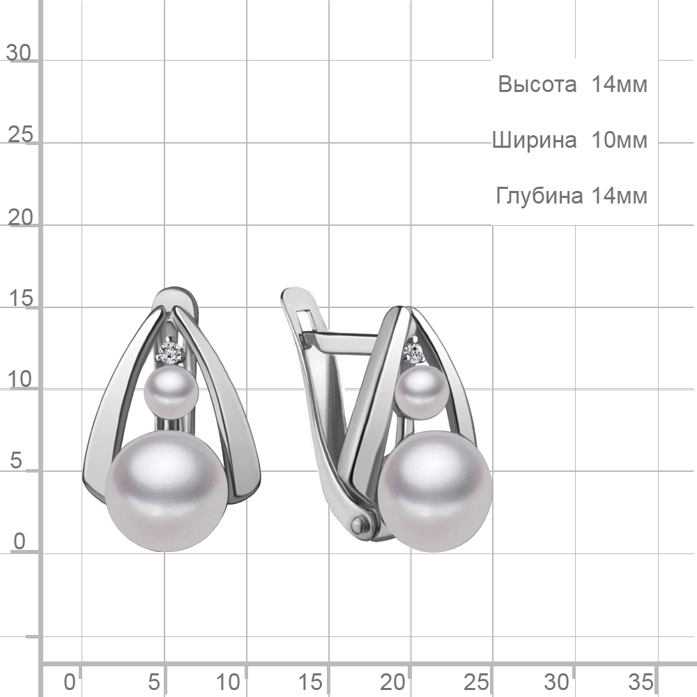 49322А Серьги из Серебра с культ. жемчугом аа, фианитами