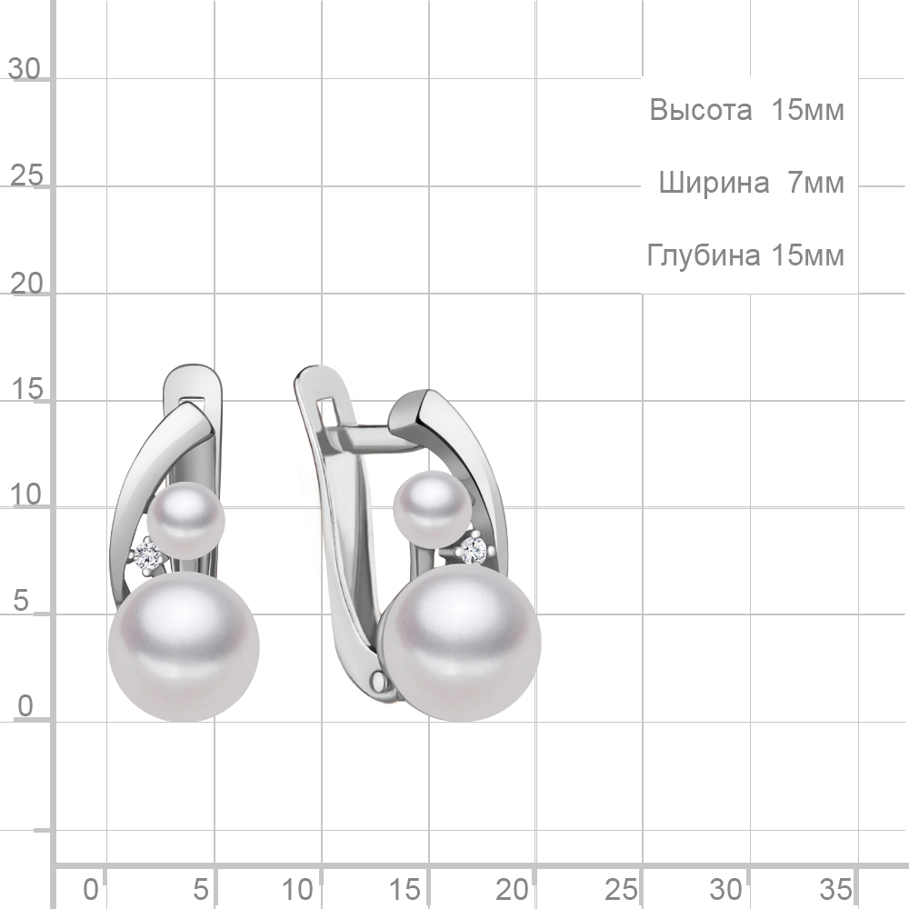 49324А Серьги из Серебра с культ. жемчугом аа, фианитами